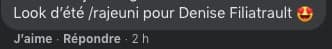 Le public a également manifesté son goût pour la transformation capillaire de Denise sur la page Facebook de Bonsoir bonsoir!. Ils étaient nombreux à souligner combien sa crinière lui allait à merveille!