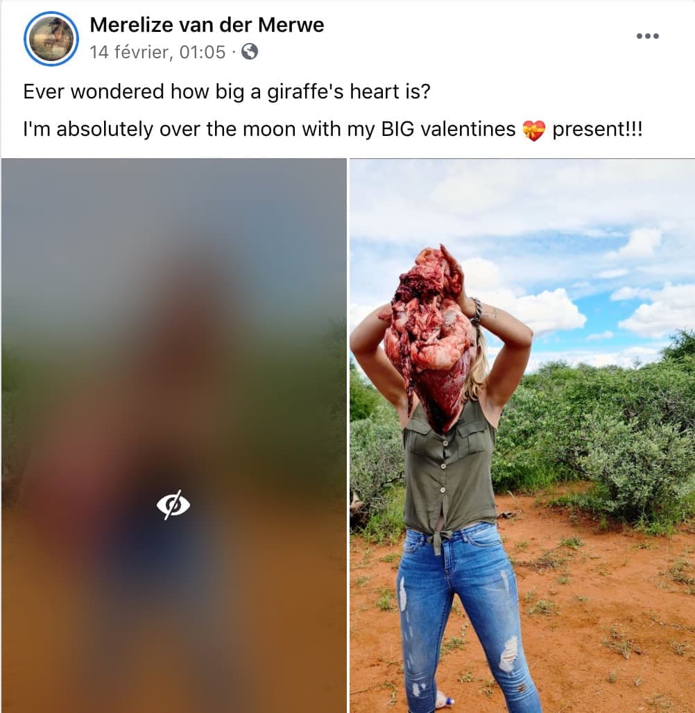 Elle tue une girafe et se prend en photo avec son cœur pour la Saint-Valentin
