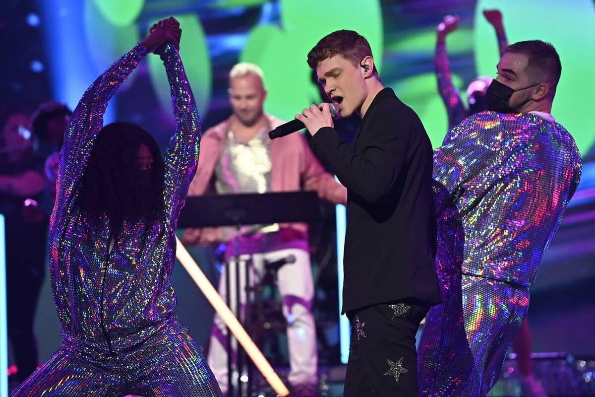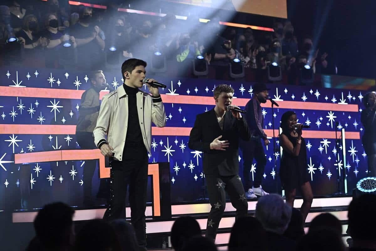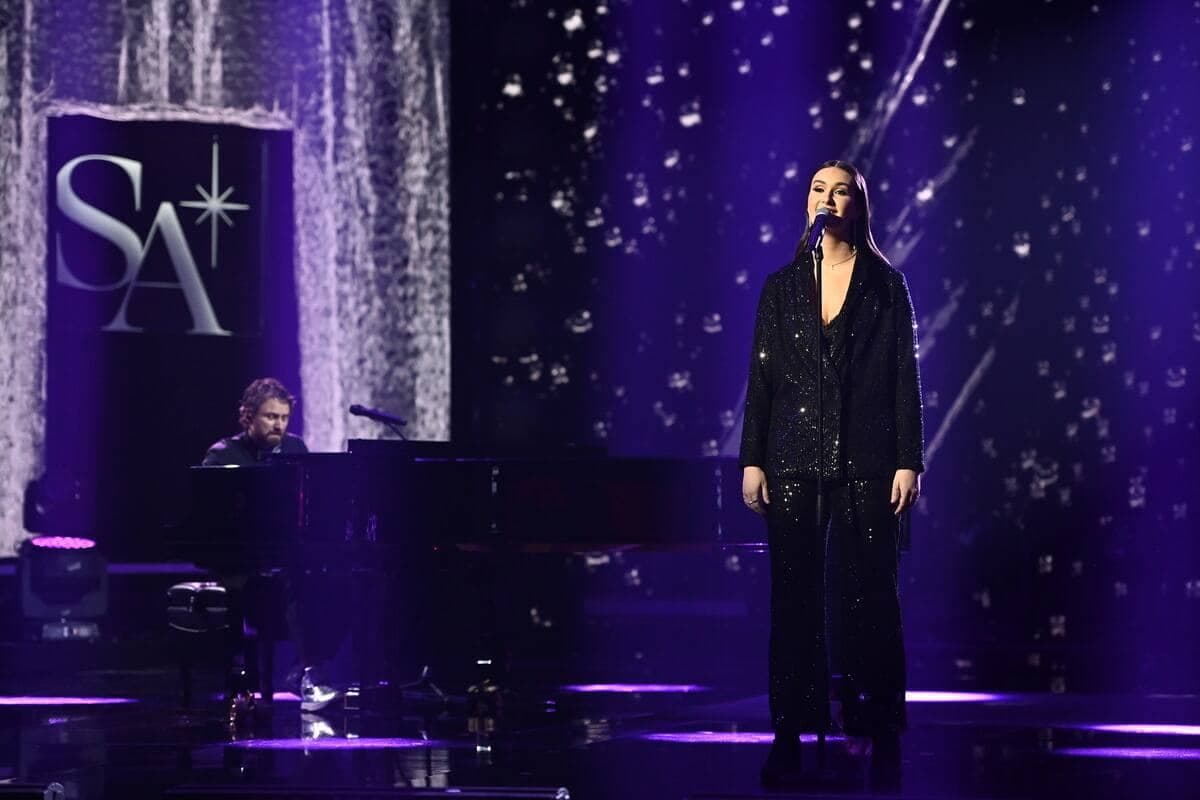 Les quatre demi-finalistes ont ensuite interprété «Aimons-nous», d’Yvon Deschamps, pour faire une petite surprise à Guylaine Tremblay, qui est actuellement en tournée avec un spectacle composé de chansons de l’humoriste préférée des Québécois.