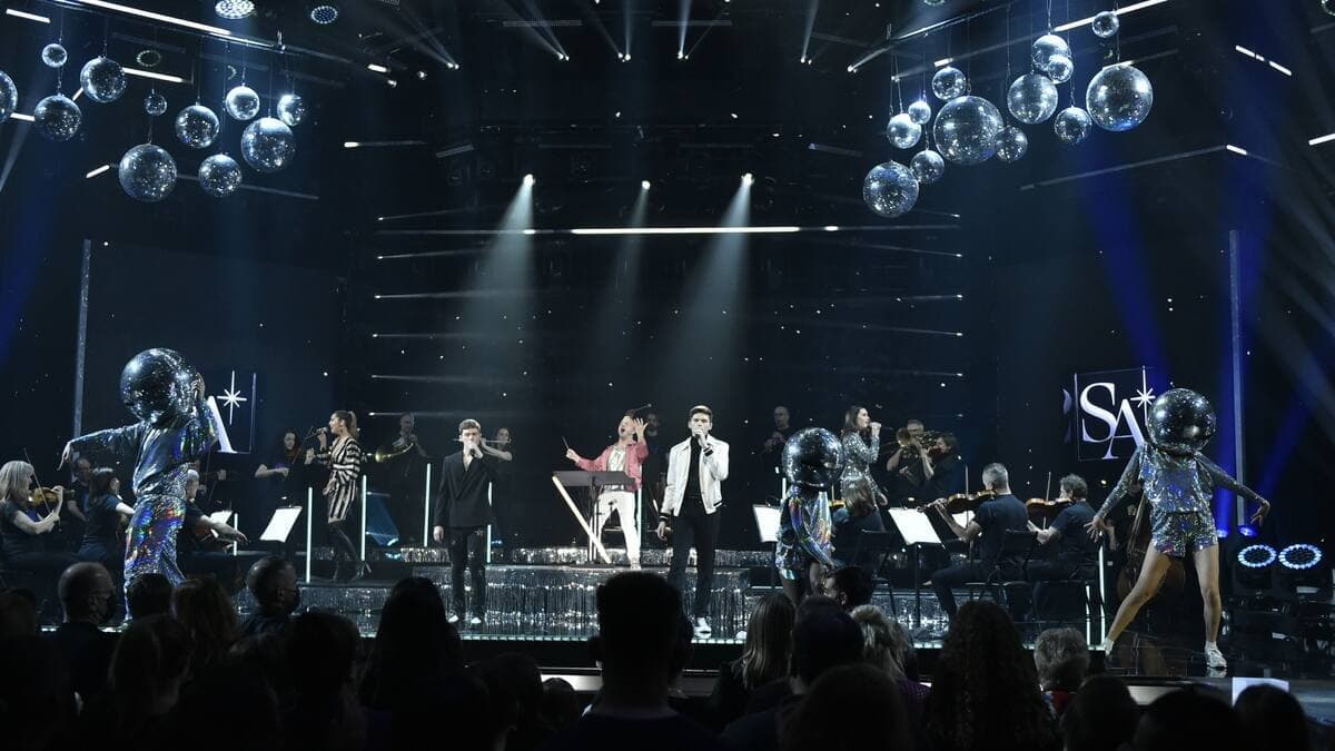 Les Académiciens ont ouvert la soirée avec la chanson de «Star Académie», accompagnés par Yannick Nézet-Séguin et vingt membres de l’Orchestre Métropolitain (OM).