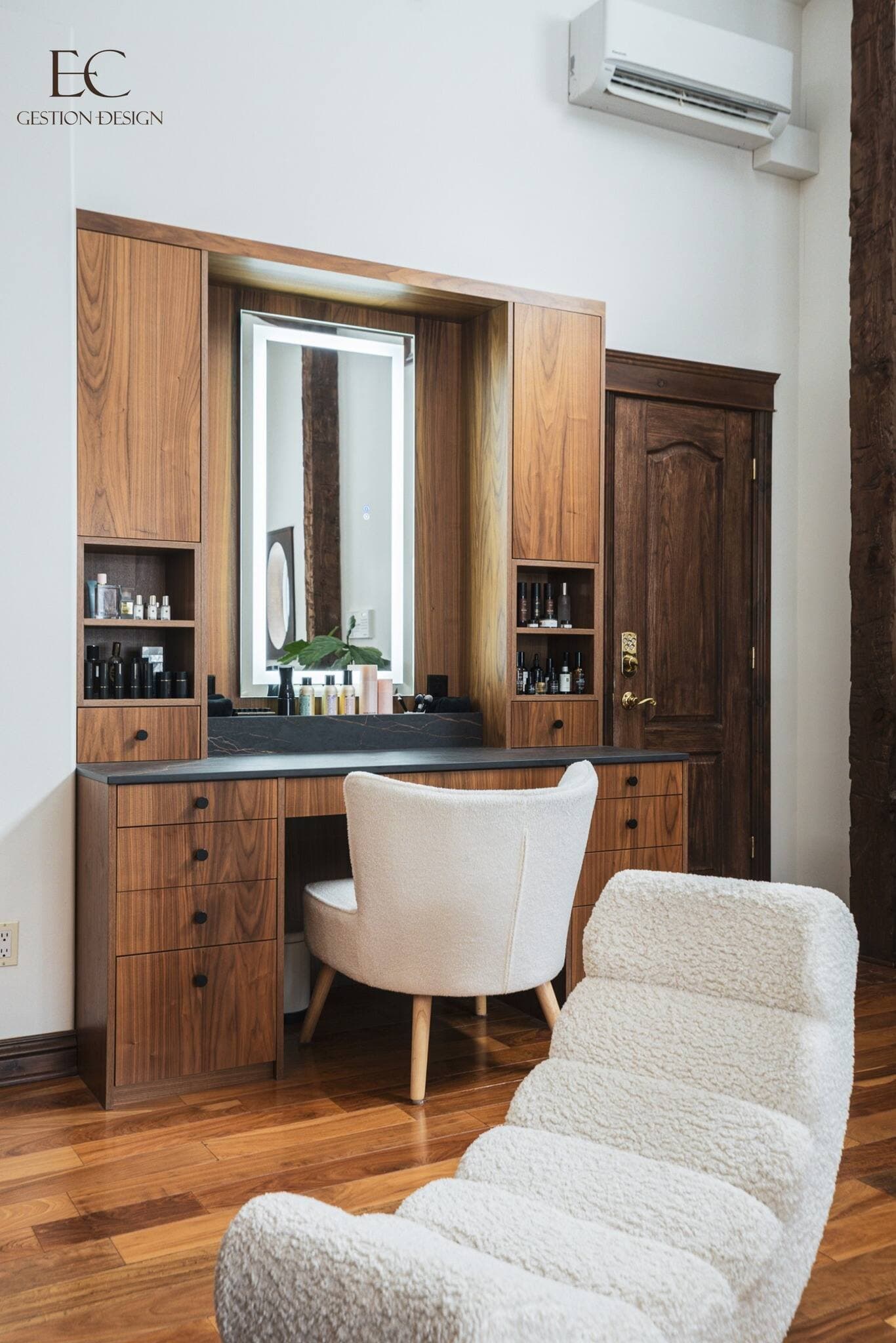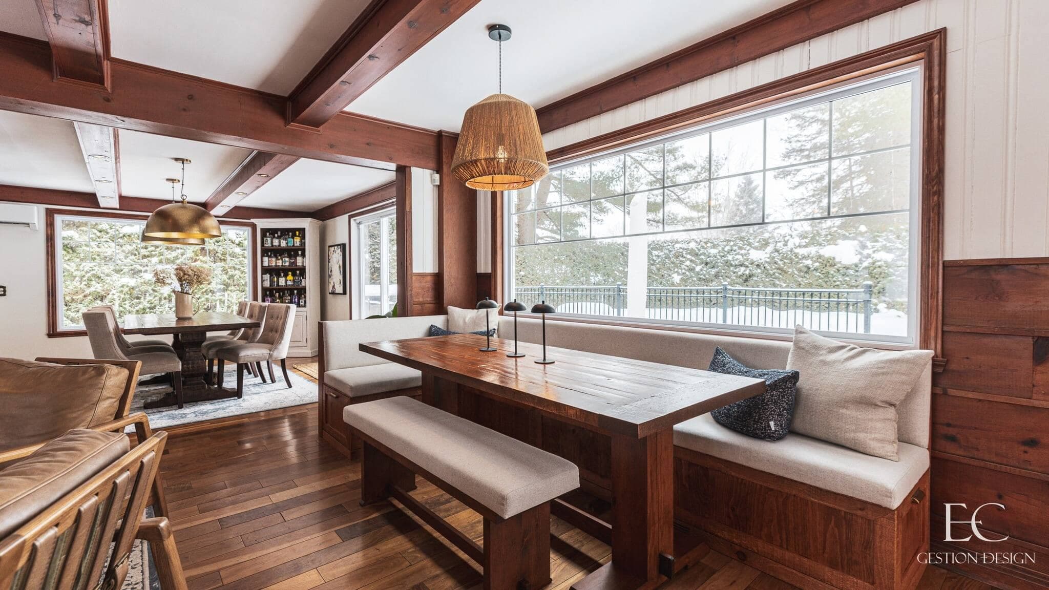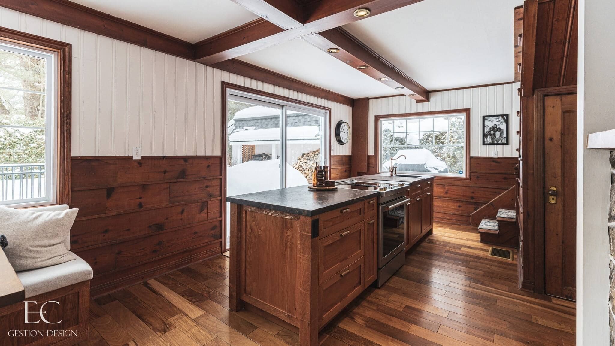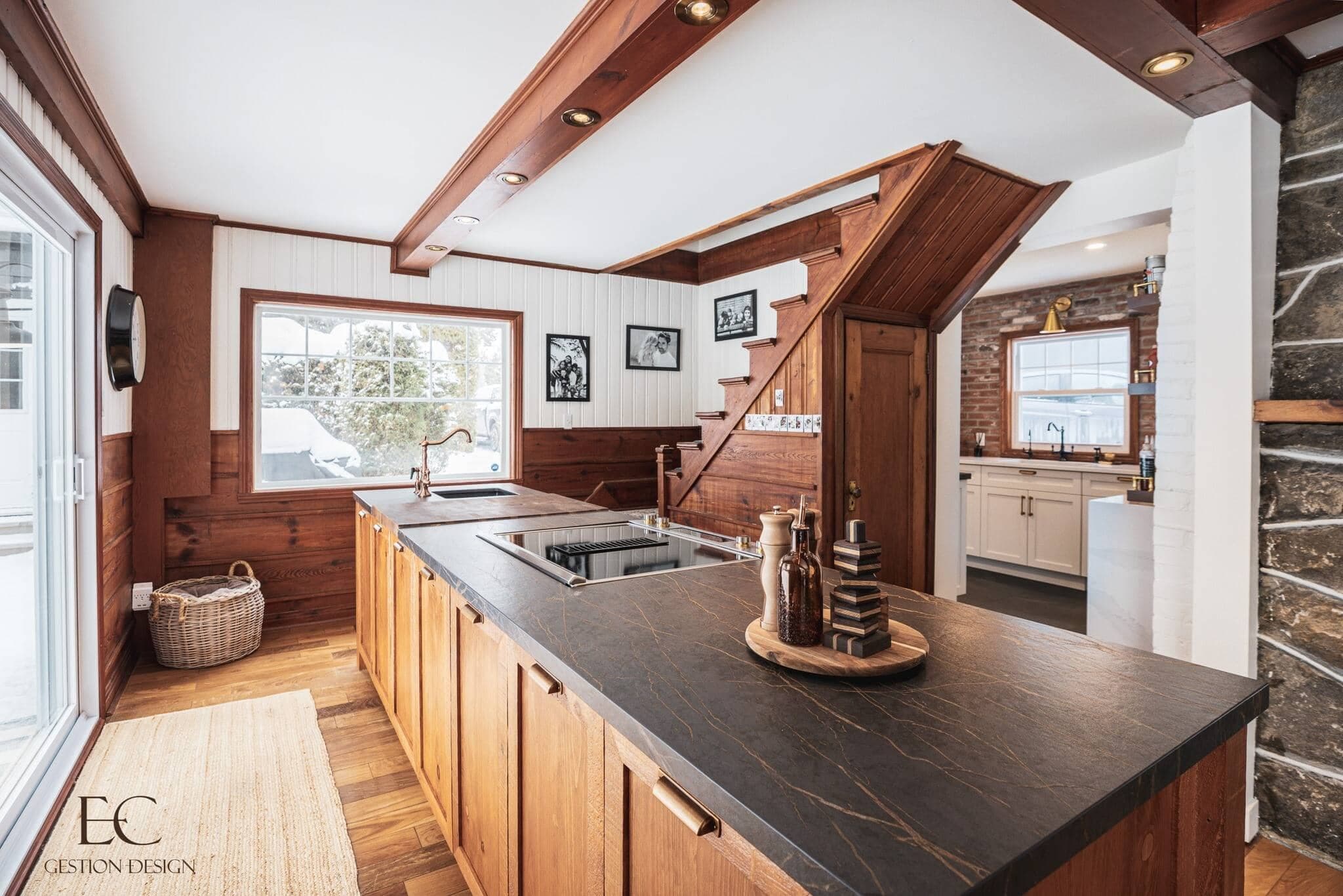 Dès le départ, le couple souhaitait conserver l’âme de la maison tout en y apportant une essence plus chaleureuse, grâce à l’ajout de bois soigneusement choisi pour s’harmoniser avec l’espace existant. Et selon la designer, le pari est réussi!