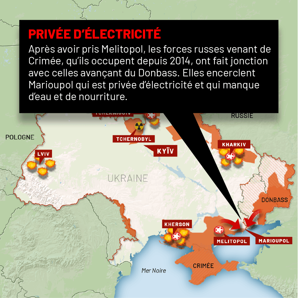 21h08 | Ukraine: la ville-clé de Marioupol soumise à un «blocus» des forces russes