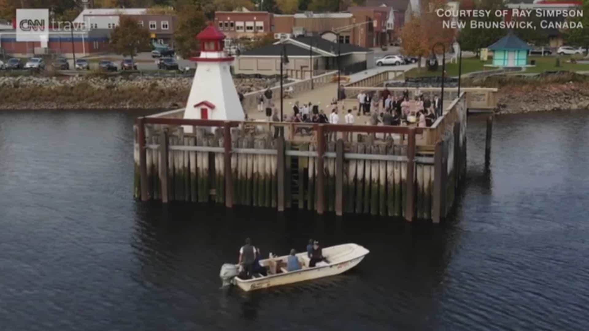 Un couple canadien a fait le choix de se marier à la frontière canado-américaine afin que famille et amis des deux pays puissent être présents à la cérémonie.