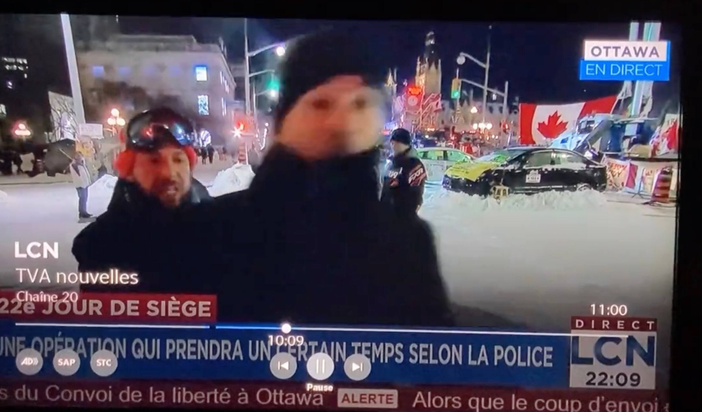 Le journaliste Raymond Filion a été poussé dans le dos violemment vendredi par un manifestant du convoi à Ottawa, alors qu’il était en direct sur les ondes de TVA Nouvelles.