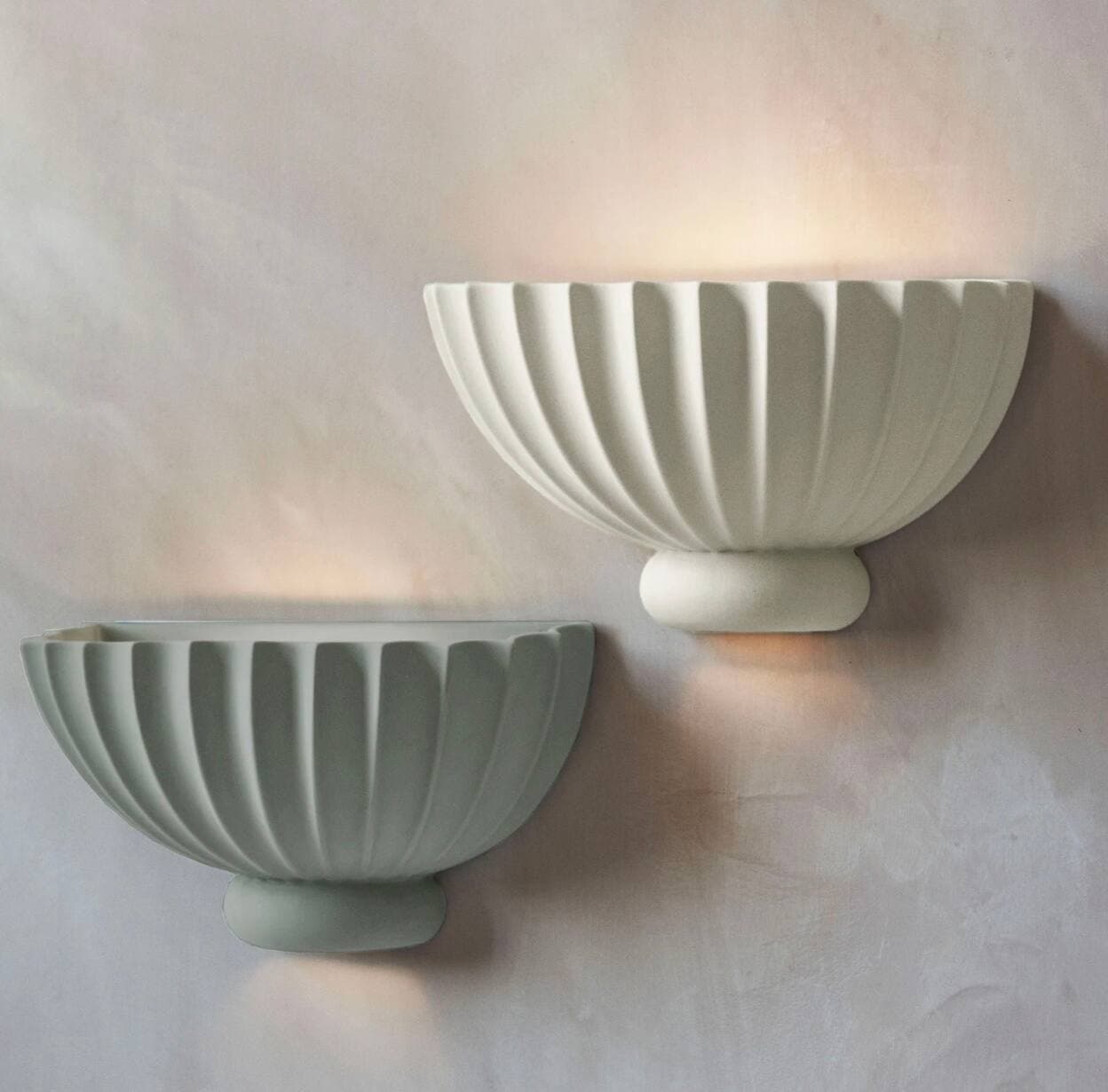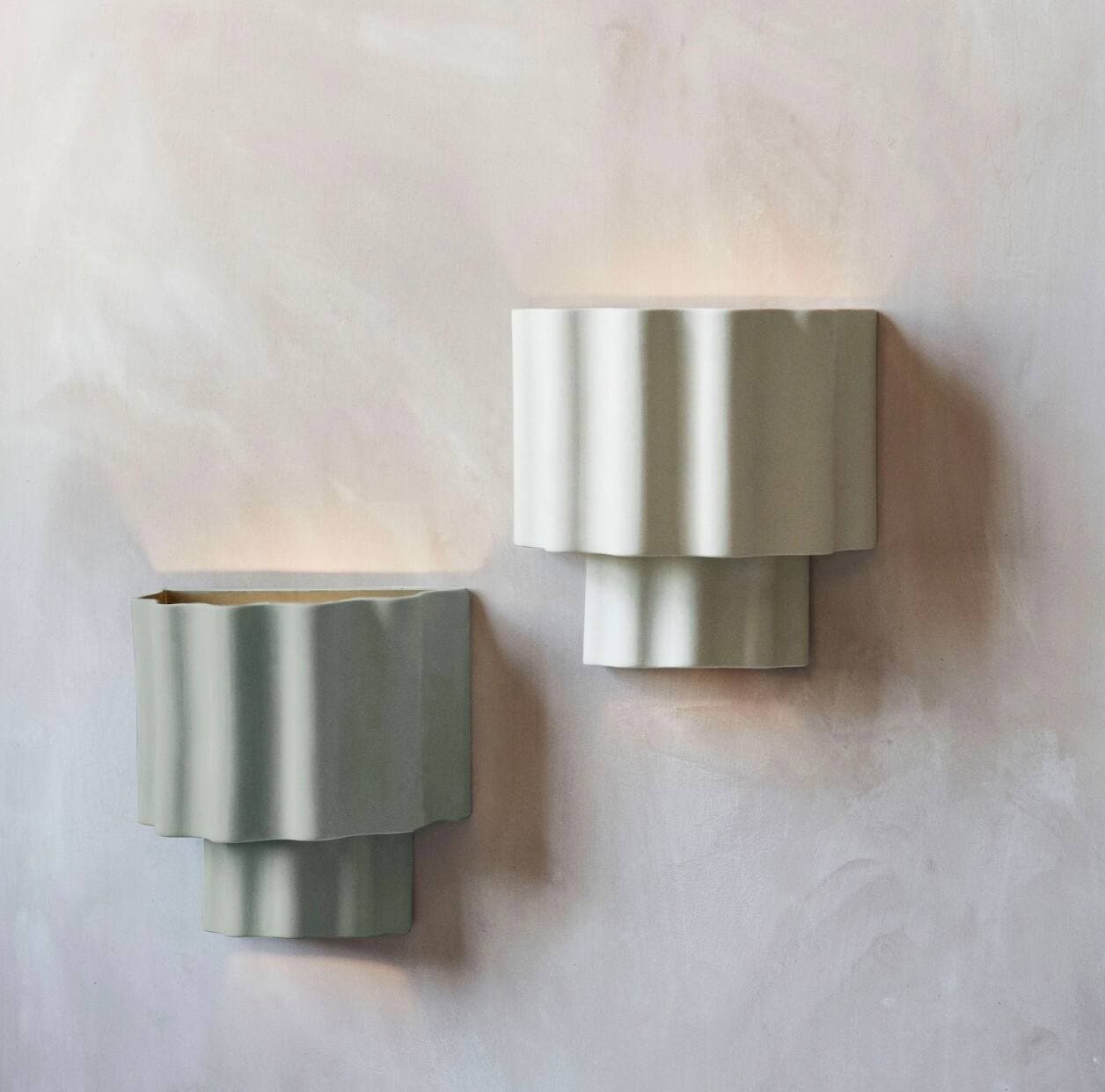 La collection est composée de vases en céramique, d’appliques murales et des lampes aux formes sculpturales, de coussins décoratifs en damier et de meubles et accessoires pour une chambre d'enfant (Aimee est nouvellement maman), le tout dans une palette de tons neutres ponctuée de touches de couleurs vives inattendues et de détails surprenants.