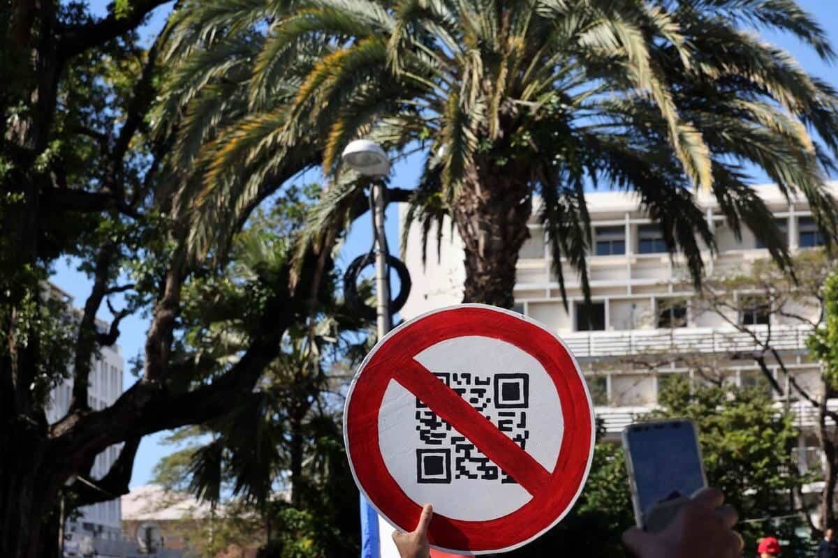 «Président, députés, sénateurs, scientifiques, journalistes tous des lâches», pouvait-on lire sur une pancarte, et sur une autre «Je ne suis ni un cobaye, ni un QR code».