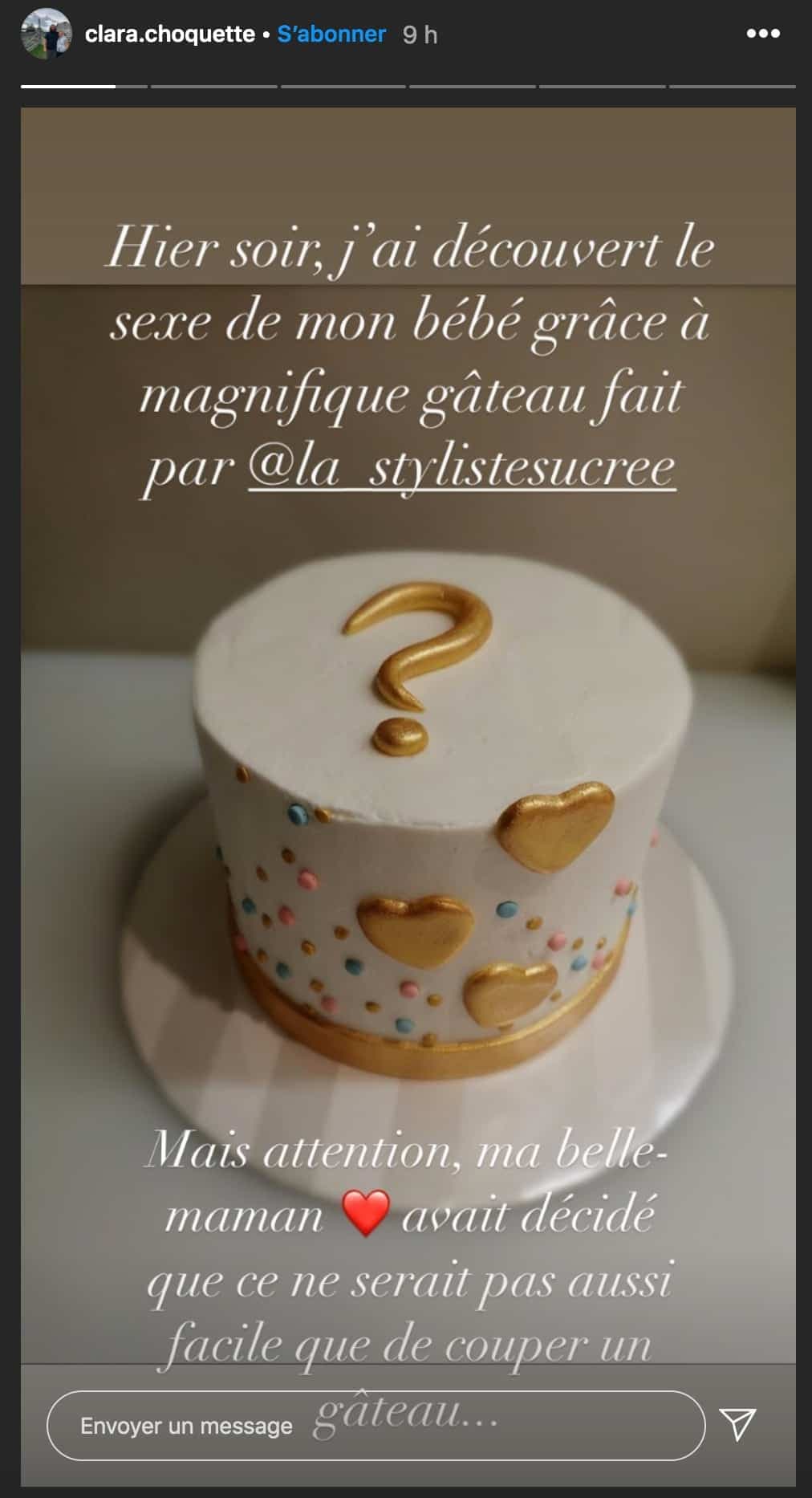 Alors que plusieurs optent pour simplement un gâteau, dévoilant, par sa couleur, le sexe du bébé, Clara explique dans une première story que sa belle-mère a décidé de rendre le tout un peu plus complexe.