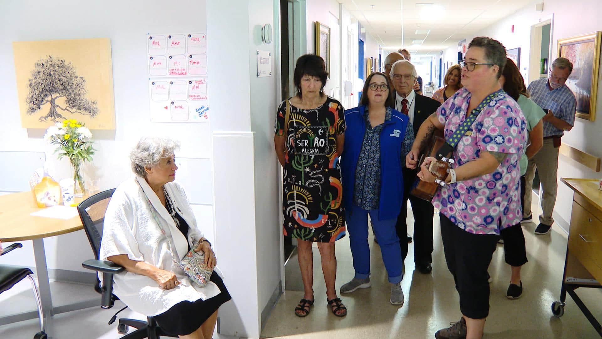 Lors de cette visite surprise, Mme Reno a rencontré les résidents ainsi que leurs familles en plus de prendre le temps de chanter avec des membres du personnel de la maison.