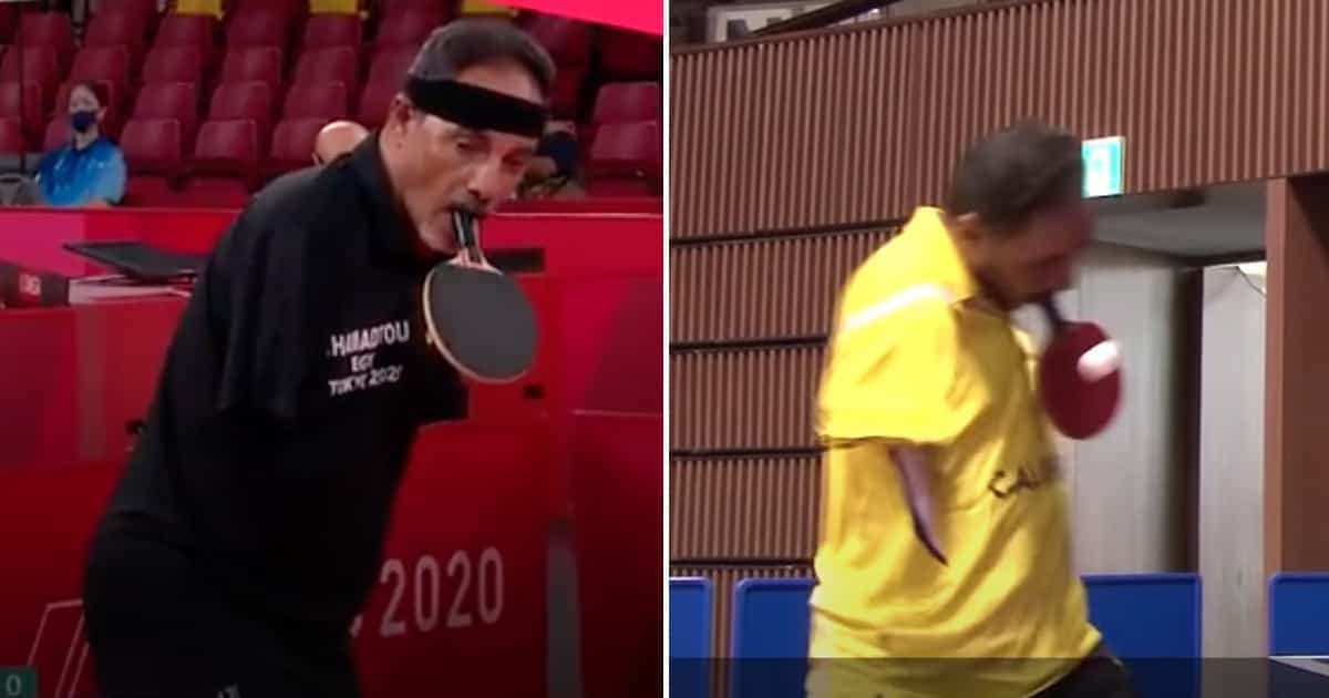 Egypt's Ibrahim Hamadtou competes in table tennis using his mouth to hold the paddle and his foot to serve 🤯pic.twitter.com/4Oz9IMnmhg