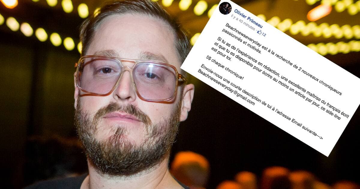 Olivier Primeau offre 5$ par article à ses nouveaux chroniqueurs et ça choque beaucoup de gens