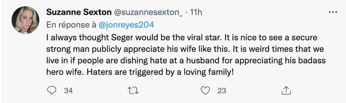 «C’est rassurant de voir un homme assez confiant pour complimenter sa femme publiquement. C’est étrange que les gens envoient de la haine à quelqu’un qui voulait simplement montrer qu’il appréciait son épouse badass.»