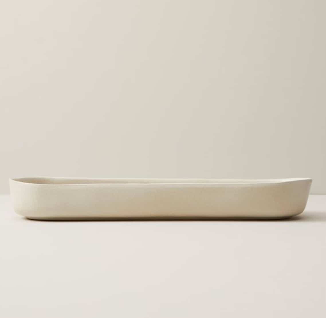 10. Plateau de service ovale de style naturel en grès, couleur ivoire - 26$