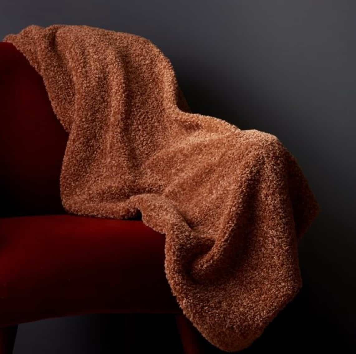 14. Jeté en fausse fourrure peluchée, couleur brun chameau - 59,62$