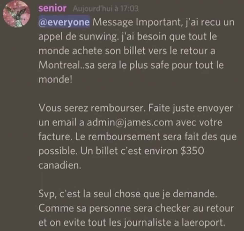 • À lire aussi: Vol de retour annulé pour les influenceurs québécois sur le party