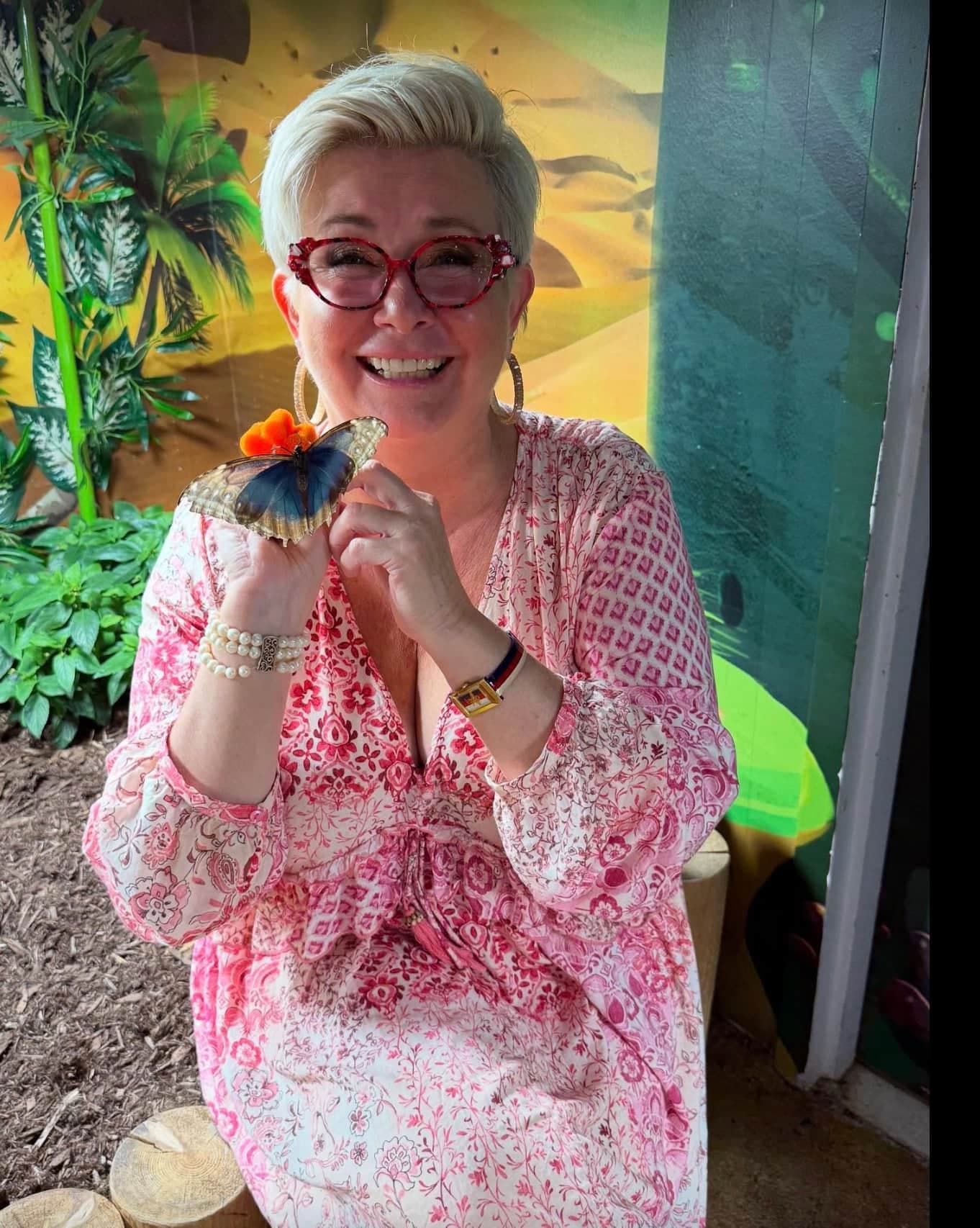 Sa publication est composée de plusieurs photos d’elle en compagnie de sa fille, Ève, et de sa petite-fille, Maélyse, célébrant son anniversaire en allant admirer les papillons.