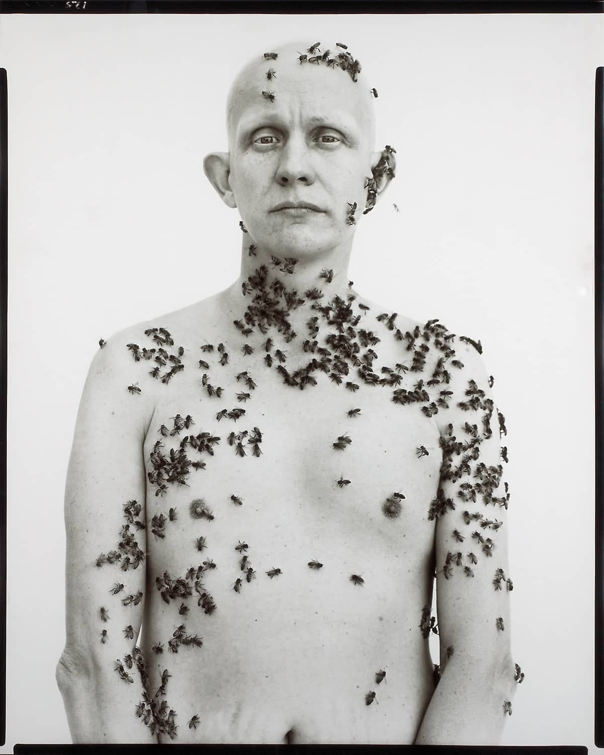 Les photos prises par Dan Winters, publiées dans le National Geographic, sont un hommage à une célèbre photo de l’apiculteur Ronald Fischer, captée par le photographe Richard Avedon en 1981.