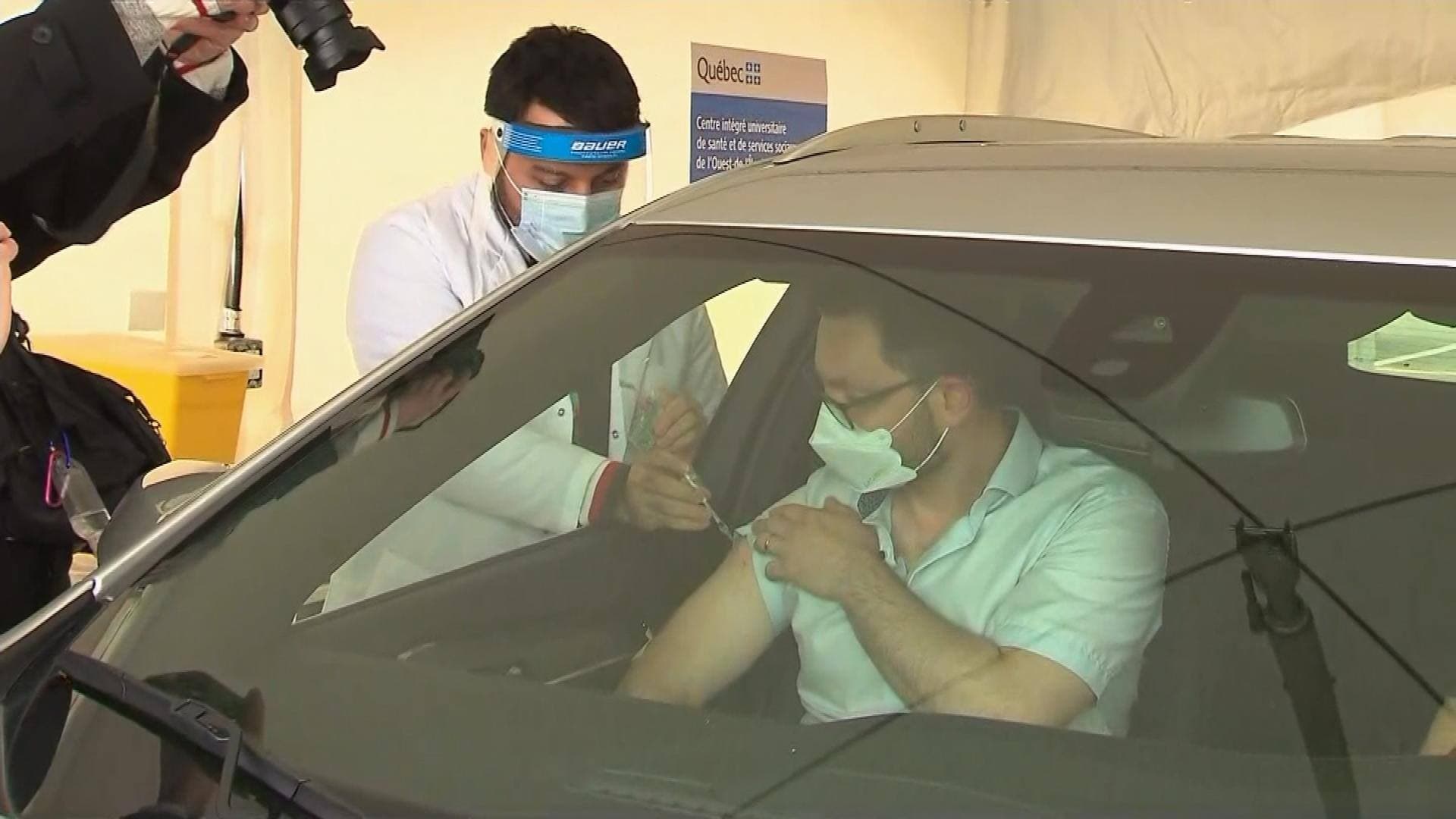 Les Québécois pourront se faire vacciner dès la mi-mai sans avoir à quitter leur voiture en se rendant sur le terrain de l'aéroport Montréal-Trudeau, a annoncé le ministre de la Santé Christian Dubé mardi matin.