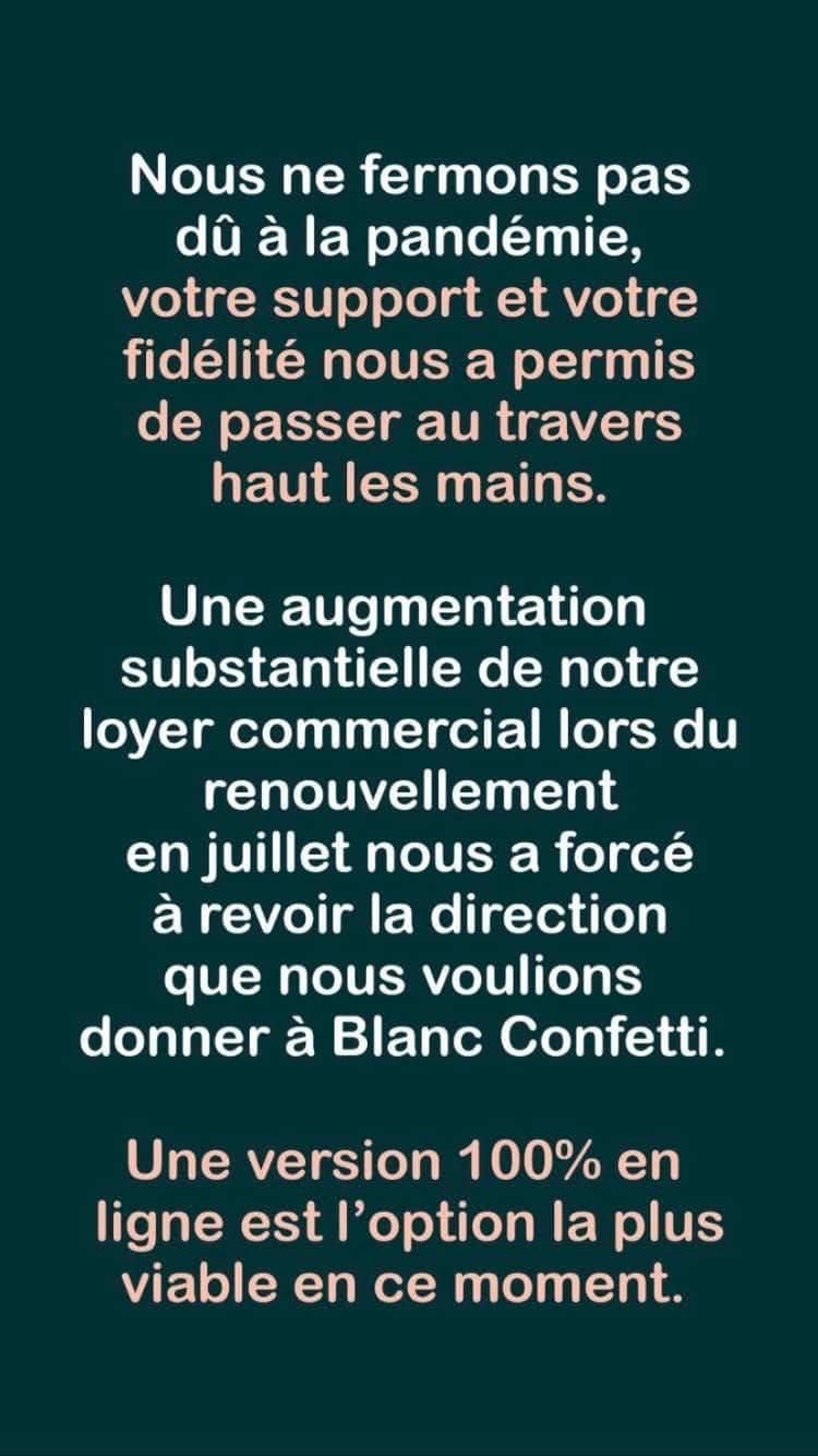 C’est bien triste de voir un commerce fermer boutique mais par chance Blanc Confetti ne disparait pas complètement!