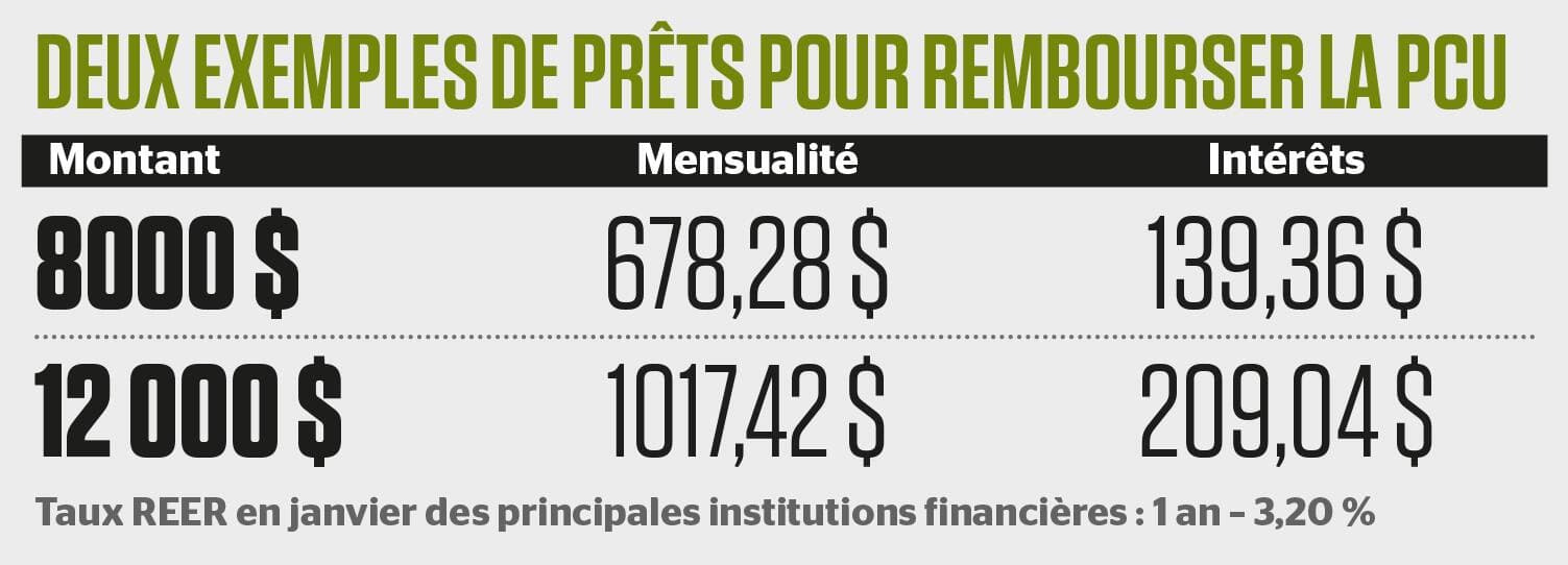 Prenons l’exemple d’un salarié qui a encaissé 50 000 $ de revenu imposable à un taux marginal de 37,12 % (ce taux s’applique jusqu’à 86 000 $) pour 2020. S’il a encaissé 8000 $ de PCU, cela représente 2970 $ d’impôt supplémentaire à payer au gouvernement, parce qu’il n’a pas été déduit à la source. S’il n’a pas cette somme, il devra l’emprunter ou s’attendre à ce qu’elle soit déduite de tout remboursement auquel il a droit. Ou il devra épargner 371,25 $ par paie pour les mois de janvier à avril...