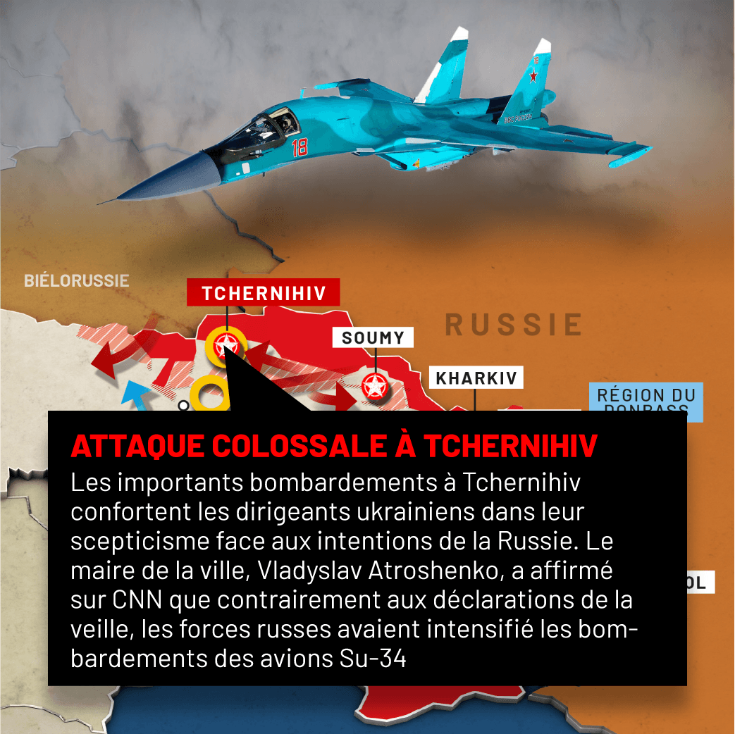 La ville de Tchernihiv, elle aussi au nord, a constitué un exemple supplémentaire du bris de la promesse russe. Les habitants sont maintenant coincés et on craint une nouvelle crise humanitaire.