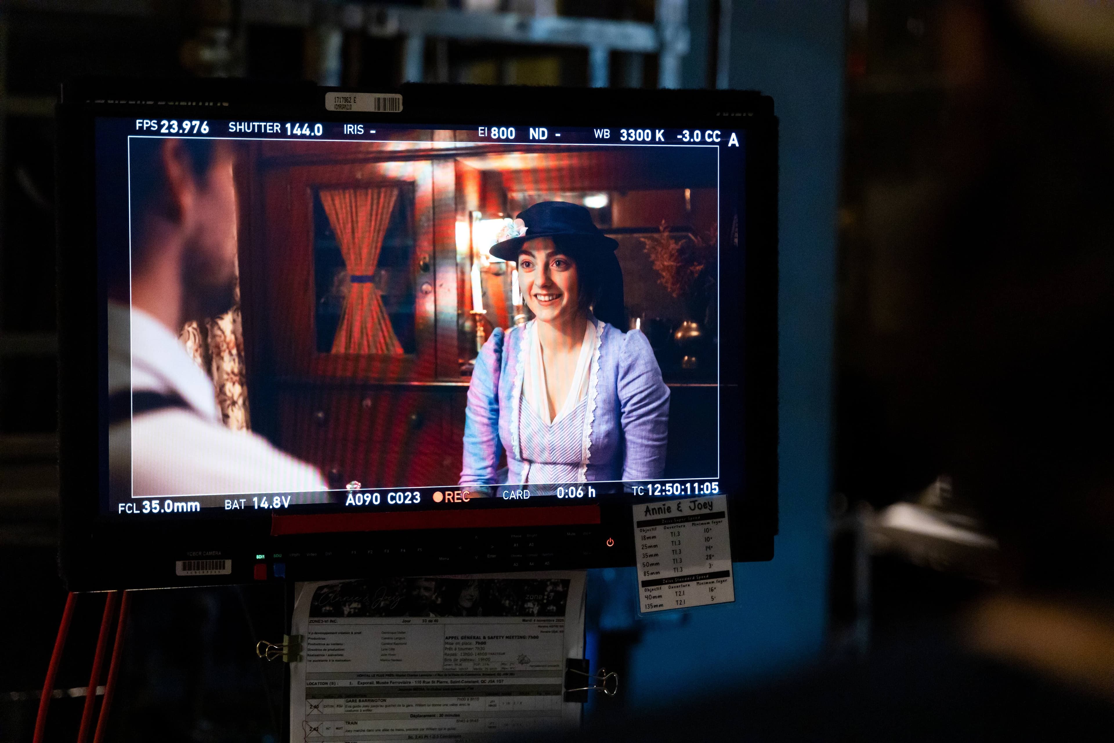 C’est à l’Exporail que l’équipe média a été invitée à assister au tournage de la série Annie & Joey, qui sera présentée au printemps 2026 à Séries Plus. Une destination plutôt surprenante pour une histoire d’amour ! Or nous ne sommes pas dans un film d’époque, malgré la qualité des décors et des costumes, mais bien dans un faux train. Un scénario imaginé par Annie pour que Joey tombe follement amoureux d’elle. Il faudra regarder la série pour découvrir pourquoi ils se retrouvent dans un tel décor !
