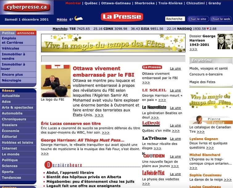1996 - Lancement de cyberpresse.ca par le quotidien La Presse.