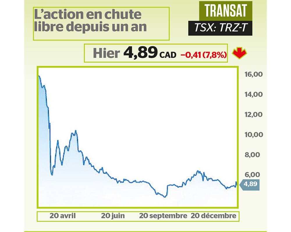 La mise à jour a fait plonger l’action de Transat, qui a clôturé mardi à 4,89 $, en baisse de 7,8 %, à la Bourse de Toronto. Pour sa part, le titre d’Air Canada a grimpé de 4,9 % à 23,42 $.
