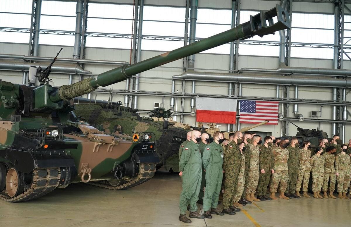 À l’occasion de la visite du secrétaire américain à la Défense Lloyd Austin et de son homologue polonais Mariusz Blaszczak, des véhicules blindés avaient été exposés dans un hangar géant de cette base où se trouvent un millier de soldats américains.