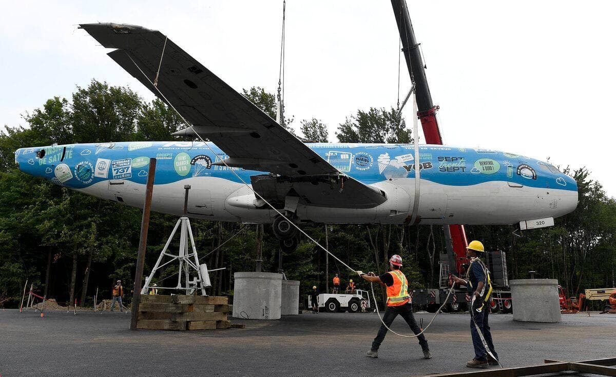 L’immense avion de 38 tonnes et long de 100 pieds a ainsi quitté le sol pour une dernière fois, grâce à une grue de 450 tonnes et à l’aide d’une trentaine de travailleurs, en après-midi.