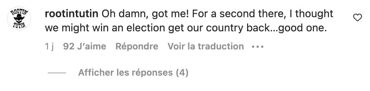Malheureusement, les centaines de commentaires sous la publication de la blague sur Instagram laissent croire que ce n’était peut-être pas l’idée du siècle.