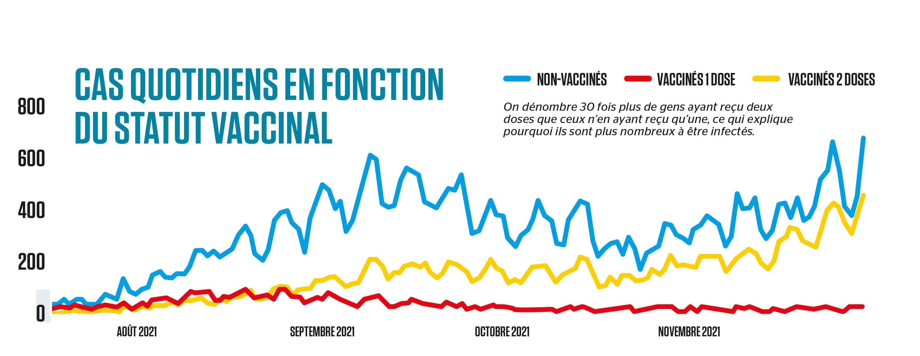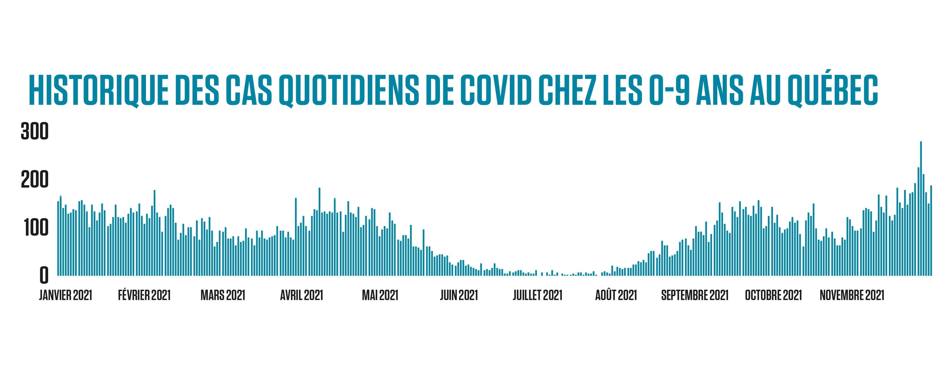 Le nombre de cas de COVID-19 a augmenté de façon importante depuis un mois et la majorité des personnes touchées n’étaient pas vaccinées, notamment les enfants de moins de 12 ans.