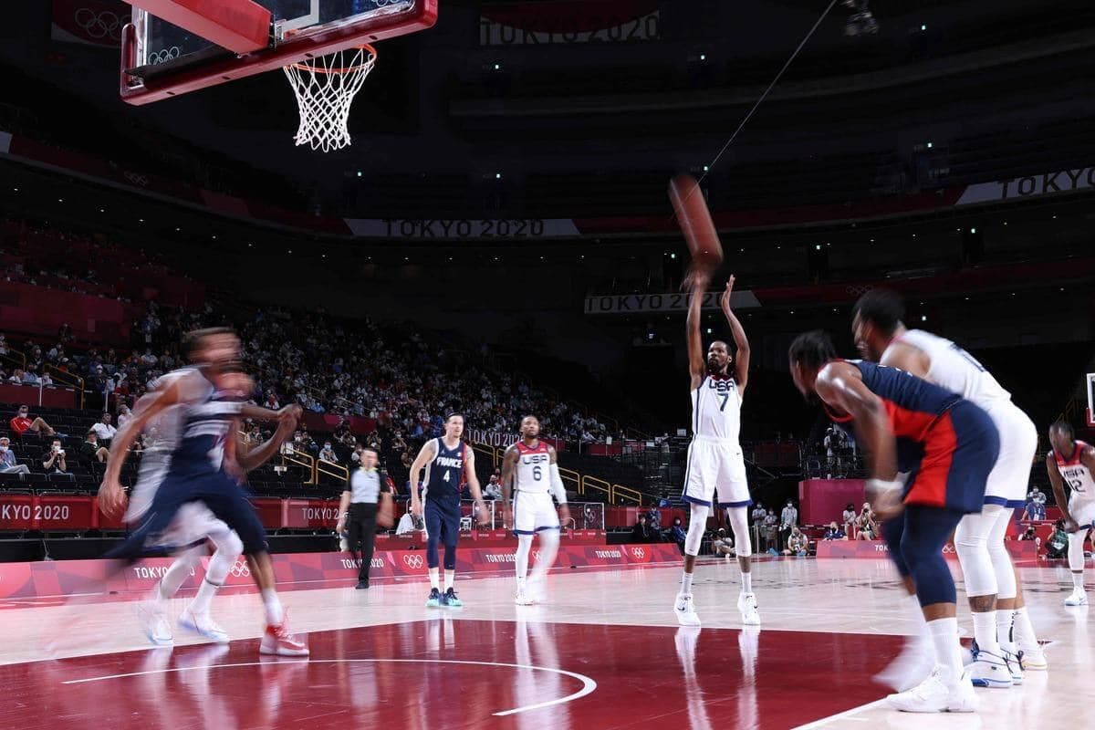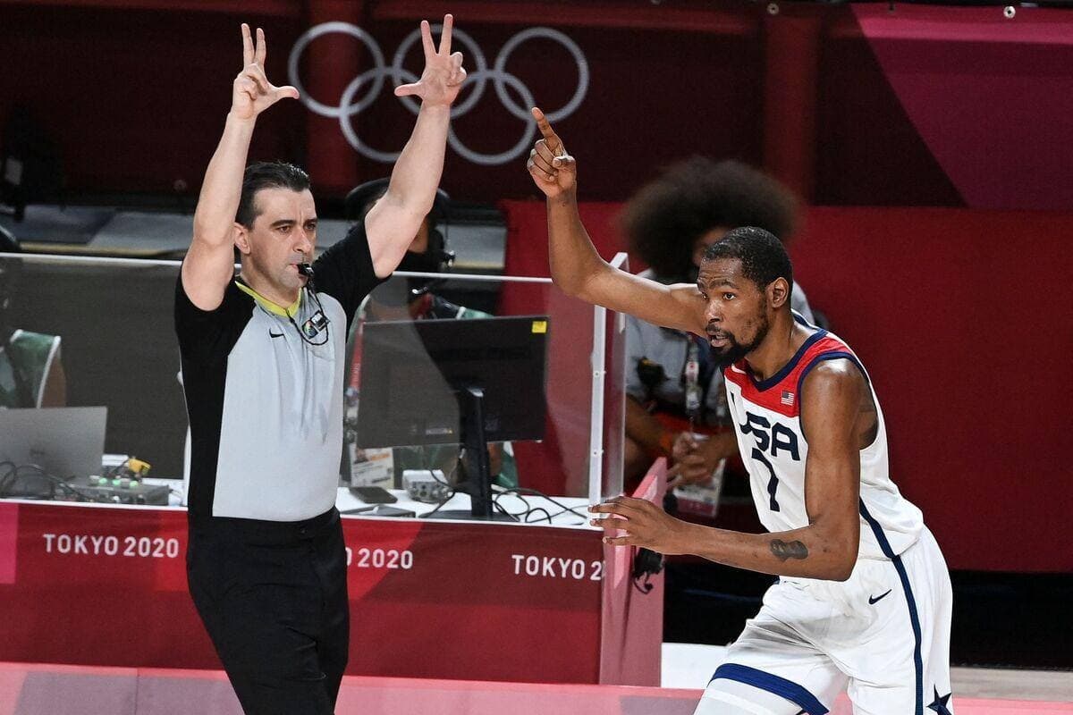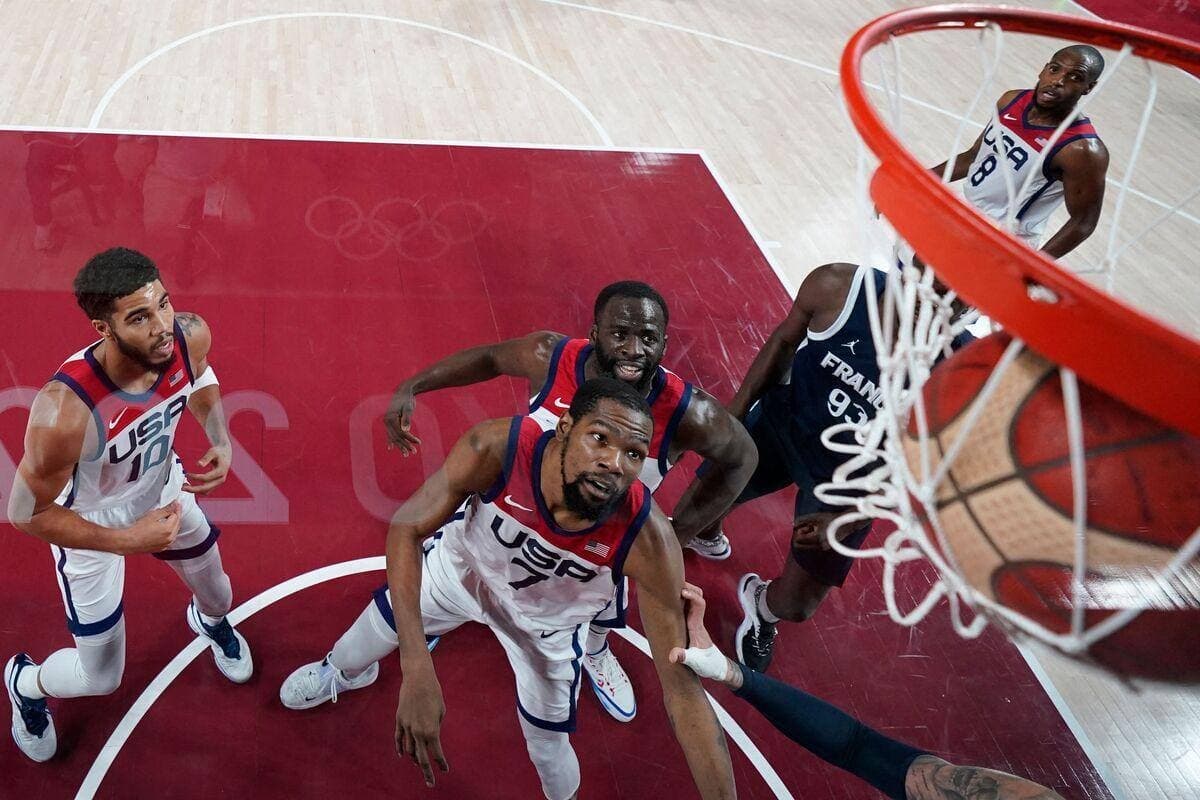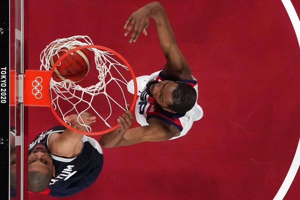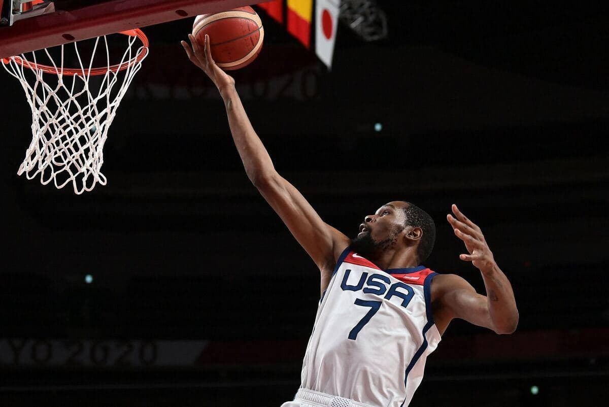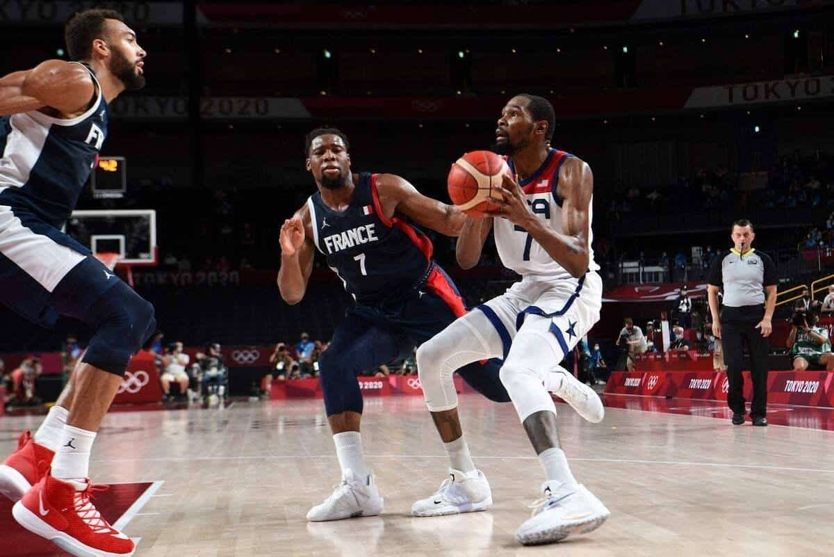 Auteur de 21 points à la pause, quasiment la moitié de son équipe, KD, qui briguait à titre personnel une troisième médaille d’or olympique après les campagnes victorieuses de Londres et Rio, a été plus discret au retour des vestiaires.