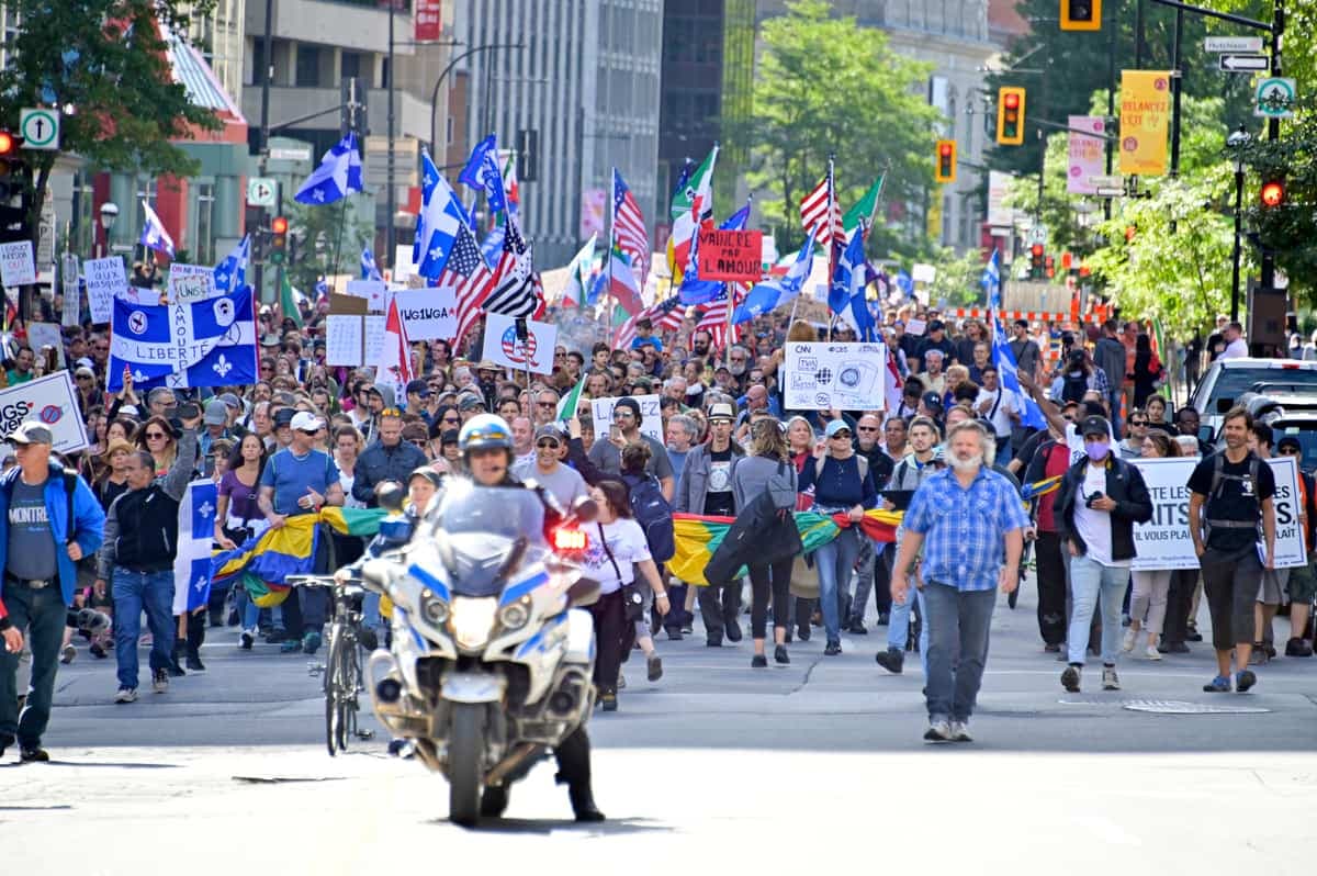 Ici, en pleine pandémie, le gouvernement refuse d’empêcher les gens de manifester. Contre le port du masque, contre le racisme, pour de meilleures conditions de travail, il y en a eu des manifestations au Québec récemment.