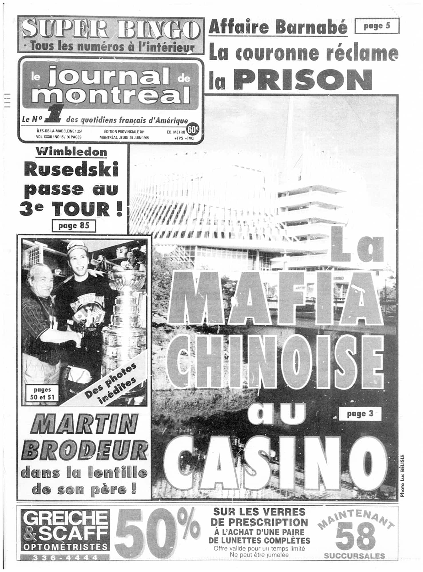 Dans Le Journal de Montréal du 29 juin 1995, le journaliste Michel Auger rapportait les arrestations de neuf individus liés à la pègre asiatique relativement à un cas d’extorsion et de prêt usuraire aux dépens d’un homme d’affaires qui avait perdu 700 000 $ au casino de l’île Notre-Dame.