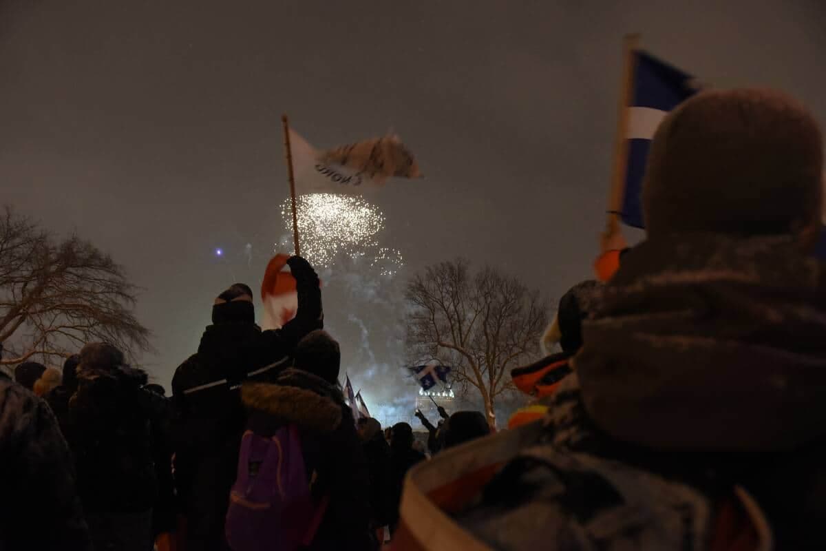 À Québec, après une première soirée annulée, le «Woodstock de la liberté» se déroule samedi principalement devant l'Assemblée nationale.