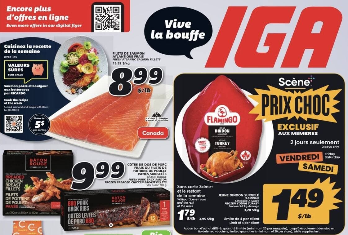- Dinde à 1,79 $/lb (1,49 $/lb prix membre ce vendredi et samedi seulement)