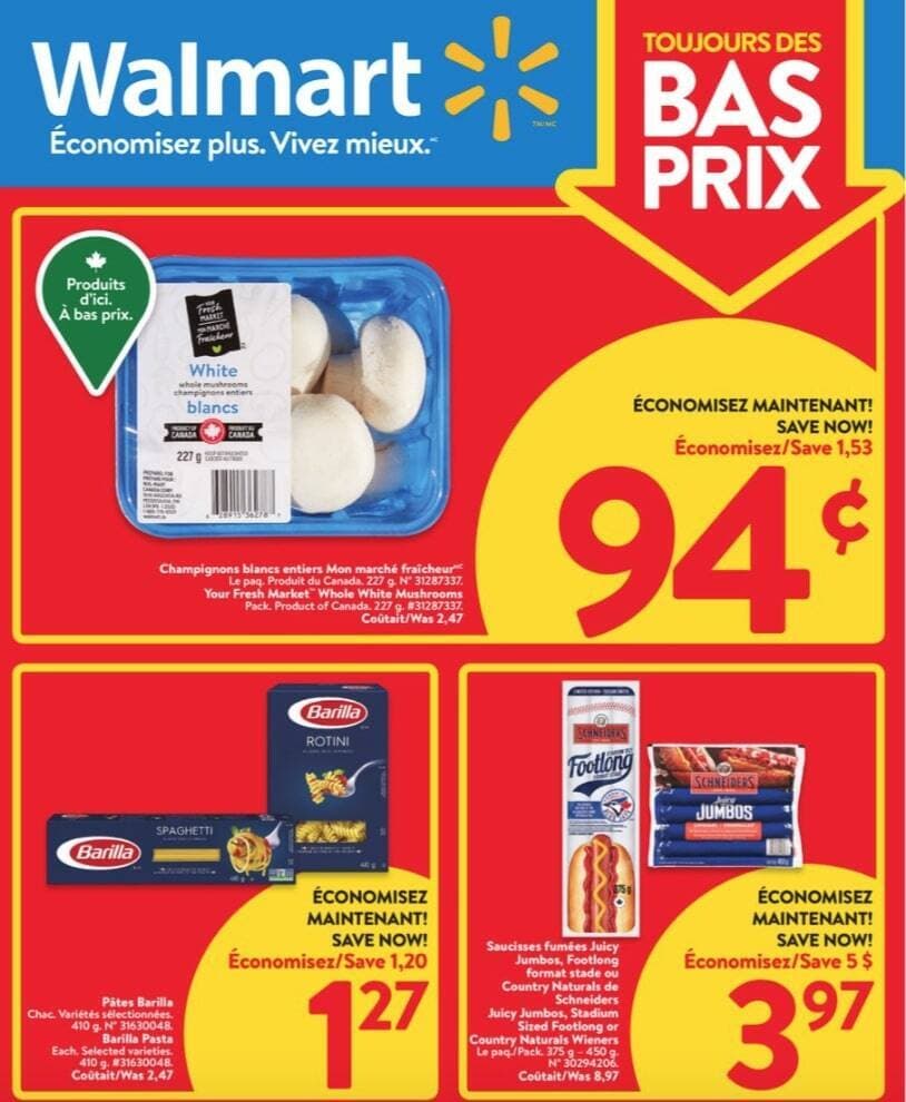 - Champignons (227 g) à 94¢ (économisez 1,53 $)
