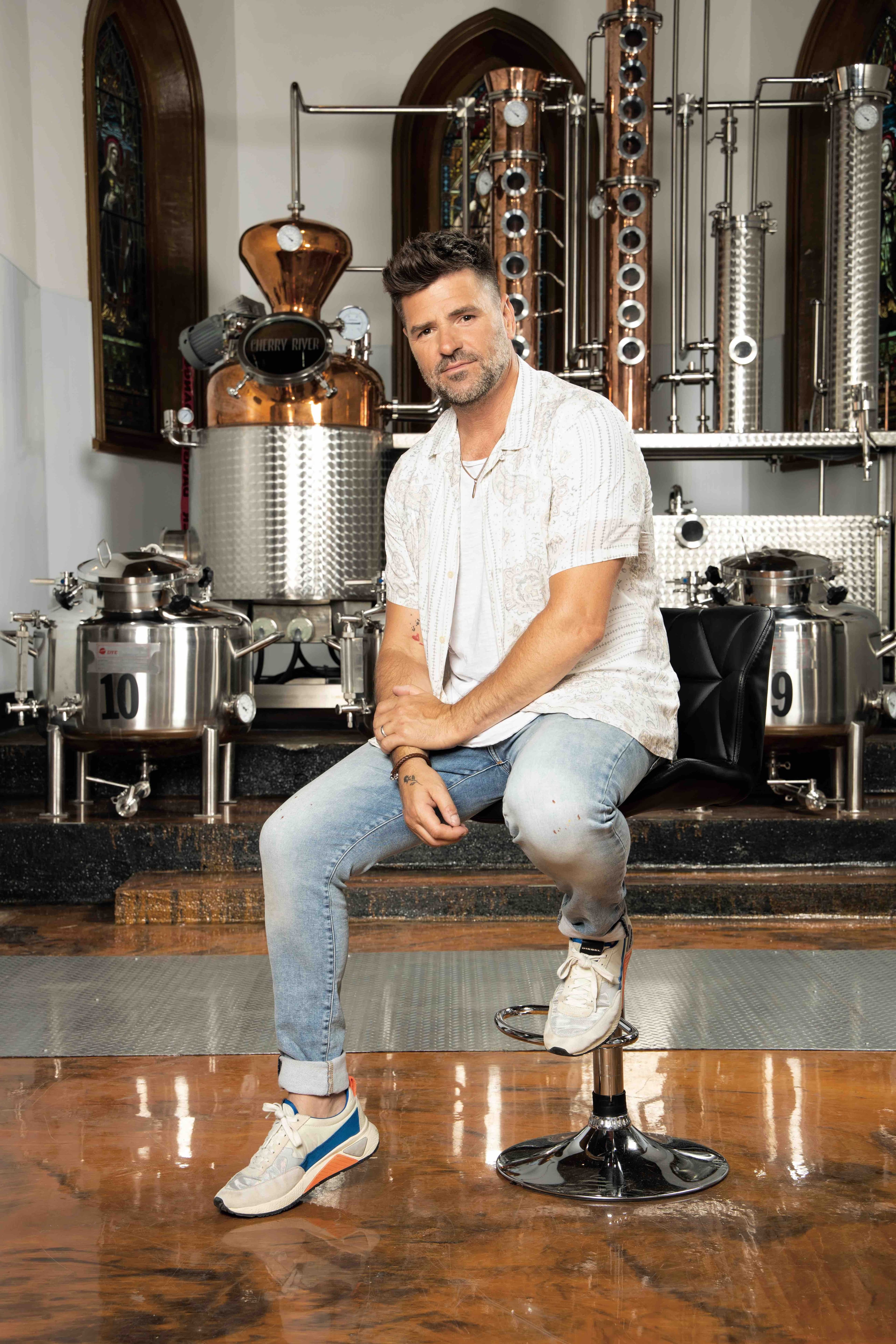 Marc Dupré carbure aux défis, aux projets qui l’allument, à tout ce qui soulève des passions chez lui. Et ce, tant dans son métier d’auteur-compositeur-interprète que dans cette aventure dans laquelle il s’est lancé il y a quelques années avec deux amis pour offrir aux consommateurs des produits alcoolisés de grande qualité. Nous avons rencontré l’artiste à l’occasion de l’ouverture officielle de la boutique et de la microdistillerie Cherry River, situées dans une ancienne église de Magog qui compte 150 ans d’histoire.