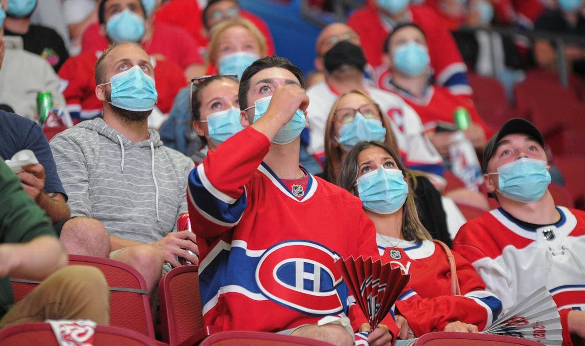 De nombreux partisans du Canadien de Montréal se sont installés près du Centre Bell pour regarder le cinquième affrontement entre les Canadiens de Montréal et le Lightning de Tampa Bay.