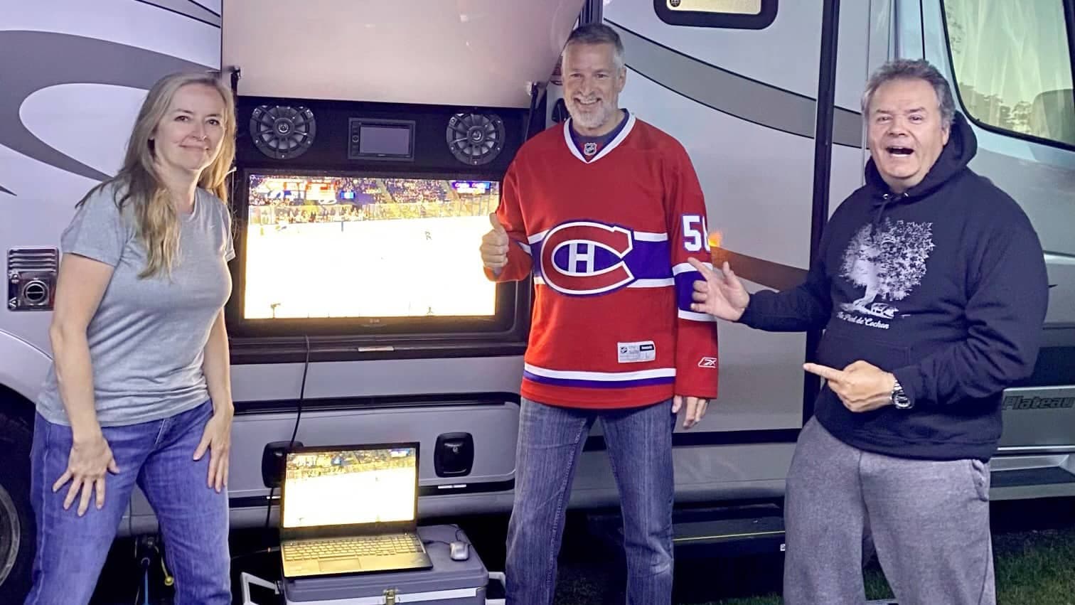 Isabelle Thouin, Martin Dufresne et Pierre Roy ont fait un arrêt à Rimouski pour regarder le match du Canadien avant de se diriger vers les Îles-de-la-Madeleine.
