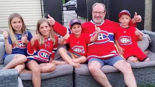 Daniel Drolet regardait le match du Canadien à la télé en compagnie de ses petits-enfants, Maëva, Leila, Jaiyden et Brandon.