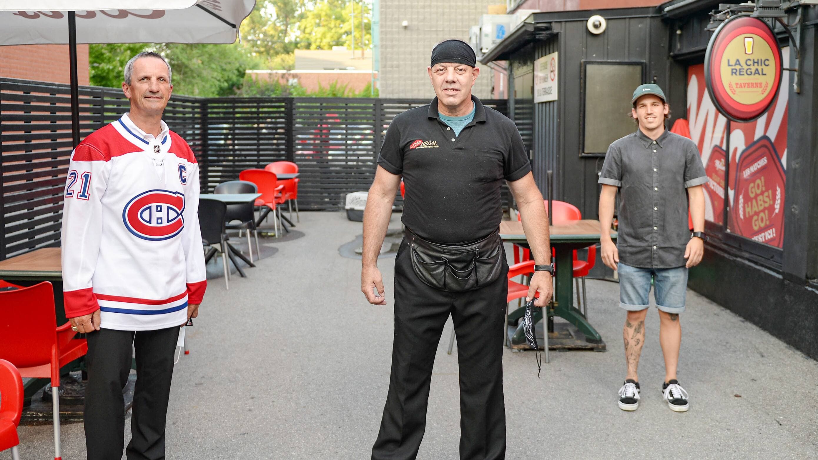 Guy Carbonneau a discuté de hockey avec Richard Lalonde, Taverne Régal et Raphael Malouin, Brasserie Molson.