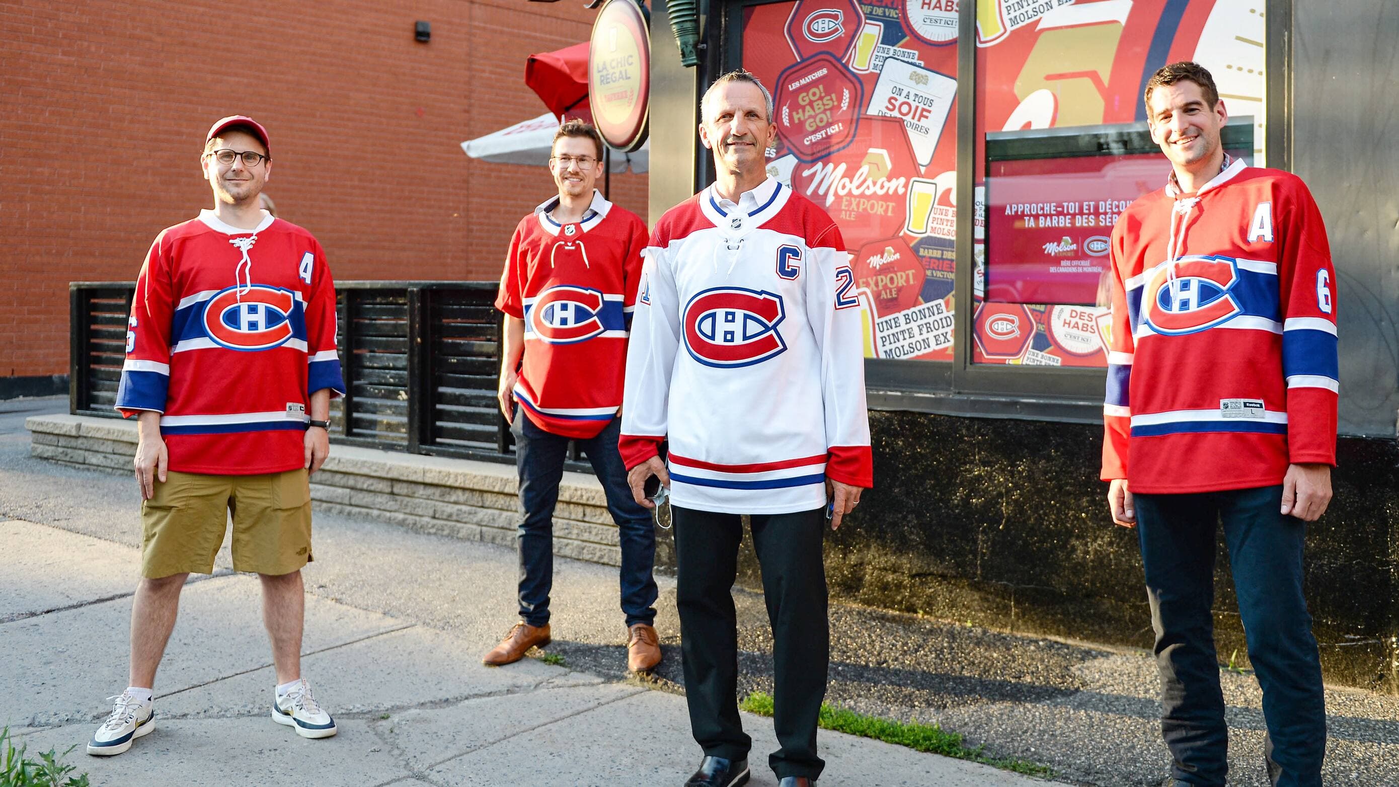 L’ancien capitaine du Canadien, Guy Carbonneau est entouré des partisans Jean-Francis Durocher, Louis Pierre Gauvin et Marc-André Coursol qui affichaient les couleurs du Tricolore.