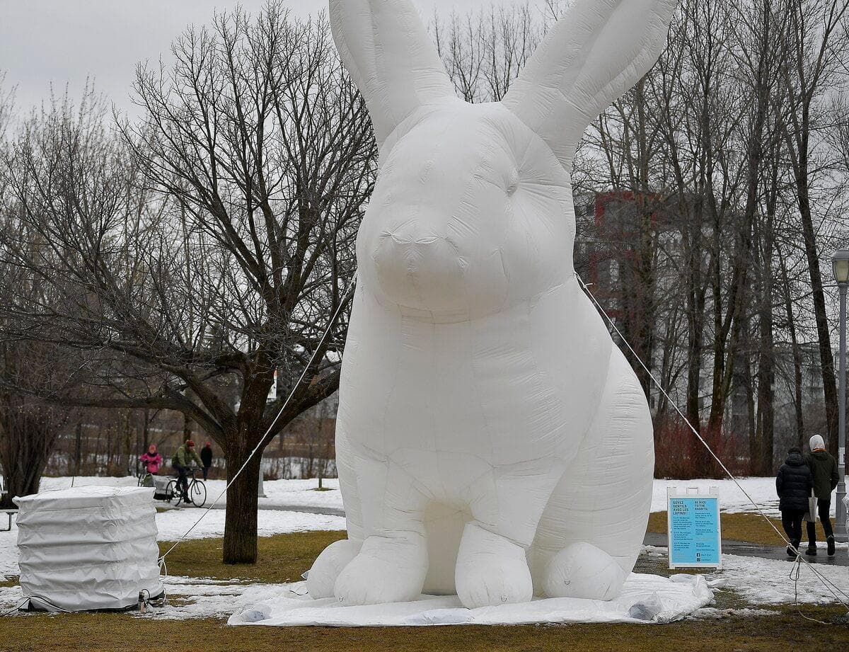 Les sept lapins géants de «The Intrude Family» qui étaient présentés au parc historique national Cartier-Brébeuf, à Québec, en guise de clôture de l’exposition Le Jardin d’hiver, ont été vandalisés mardi matin.