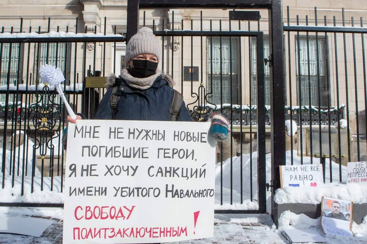 Plusieurs avaient confectionné des affiches à l’effigie de Navalny, emprisonné dès son retour dans la mère patrie le 17 janvier. Une brosse de cuvette a été laissée en face du consulat, en guise de clin d’œil à une brosse à toilette italienne d'une valeur de plus de 1000$ que Poutine aurait achetée pour un palais secret qu’il détiendrait au bord de la mer Noire, selon les allégations formulées dans un documentaire récent produit par Navalny sur la corruption du président russe.
