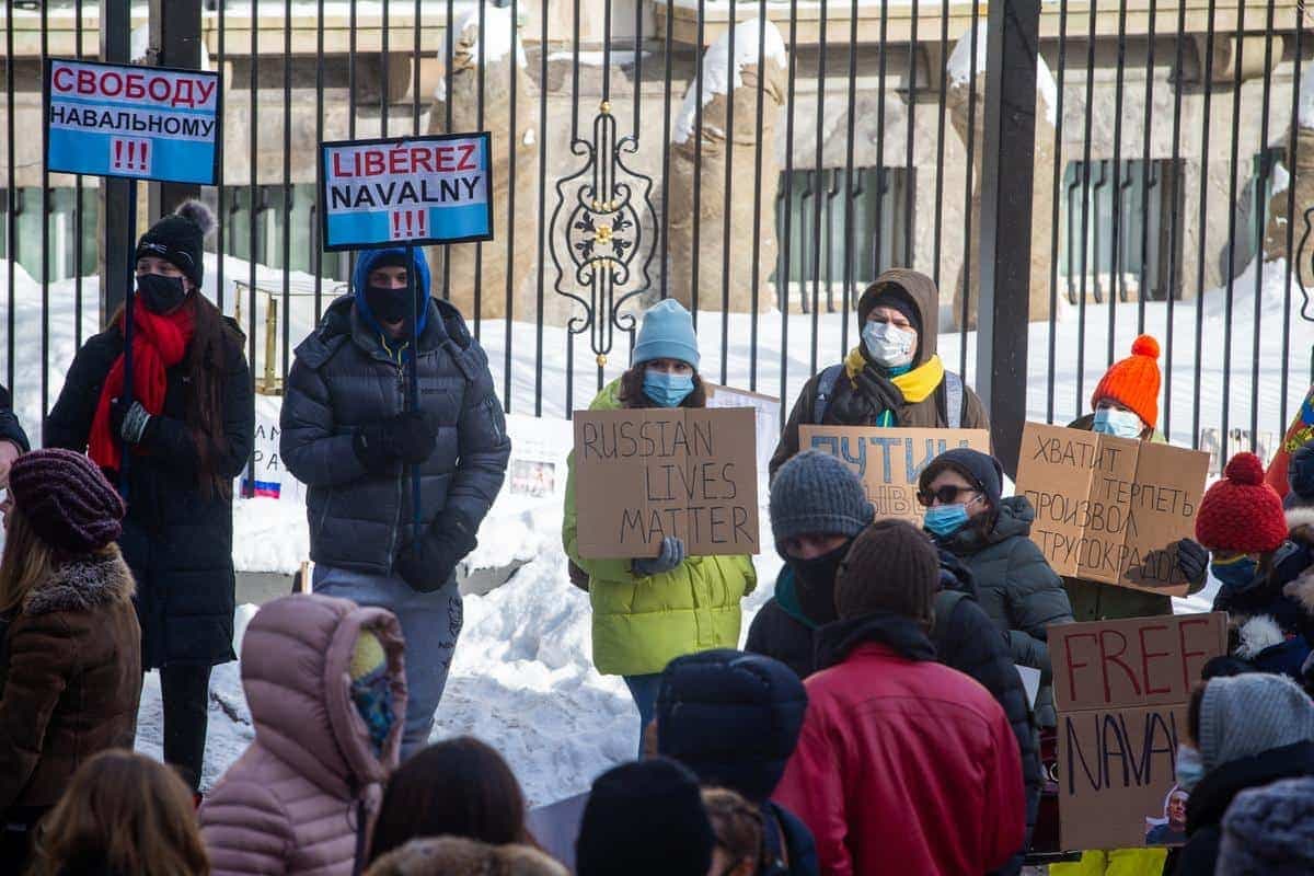 Une centaine d’opposants à l’emprisonnement du dissident russe Alexeï Navalny se sont rassemblés devant le consulat de la Russie à Montréal, samedi après-midi, pour exprimer leur mécontentement.