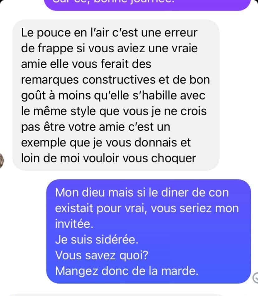«Parlez-en entre vous, parlez-en dans vos soupers, mais c***cer moi patience avec vos os**e de suggestions pas bonnes», a-t-elle écrit.