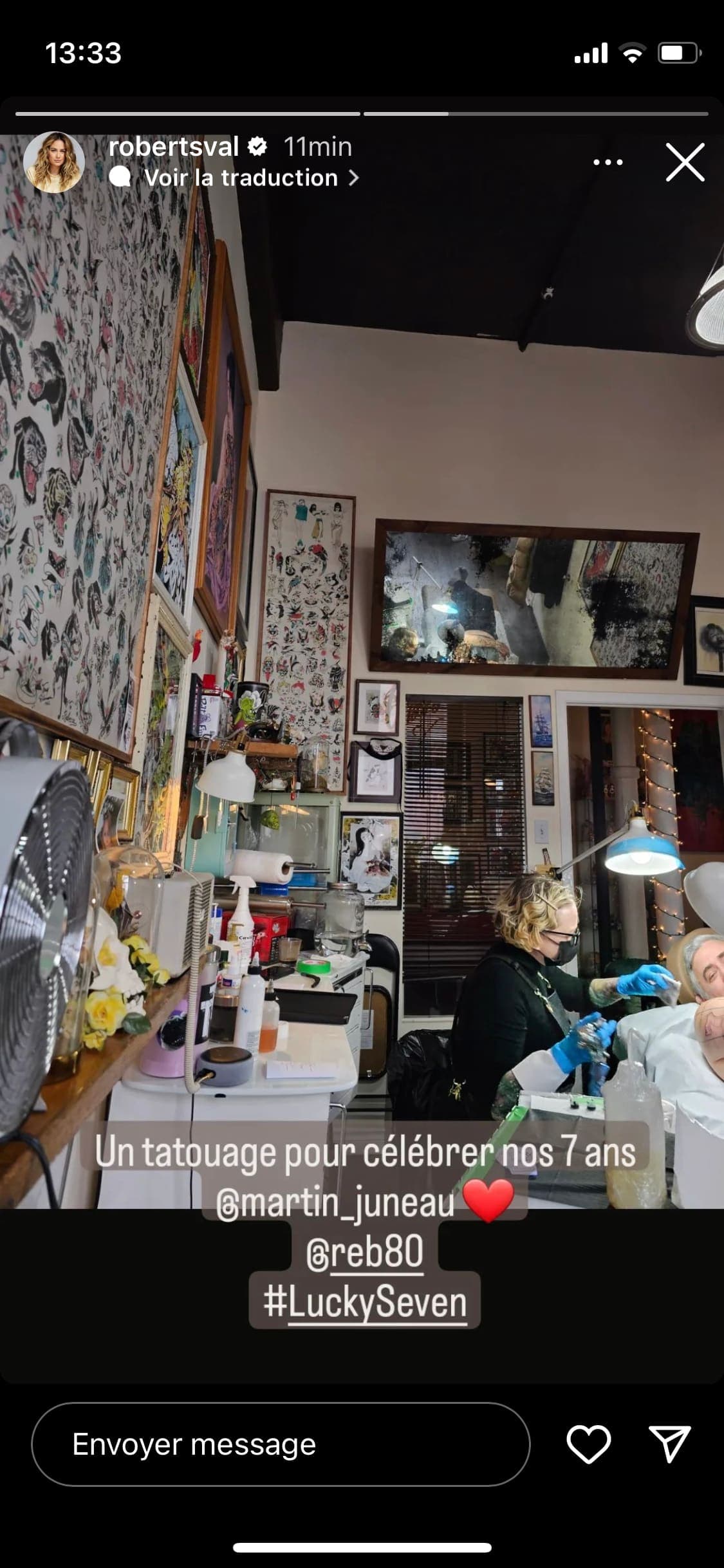 Un peu plus tôt aujourd'hui, sa conjointe, Valérie Roberts, a partagé une story sur Instagram montrant qu'elle accompagnait son époux dans un salon de tatouage.