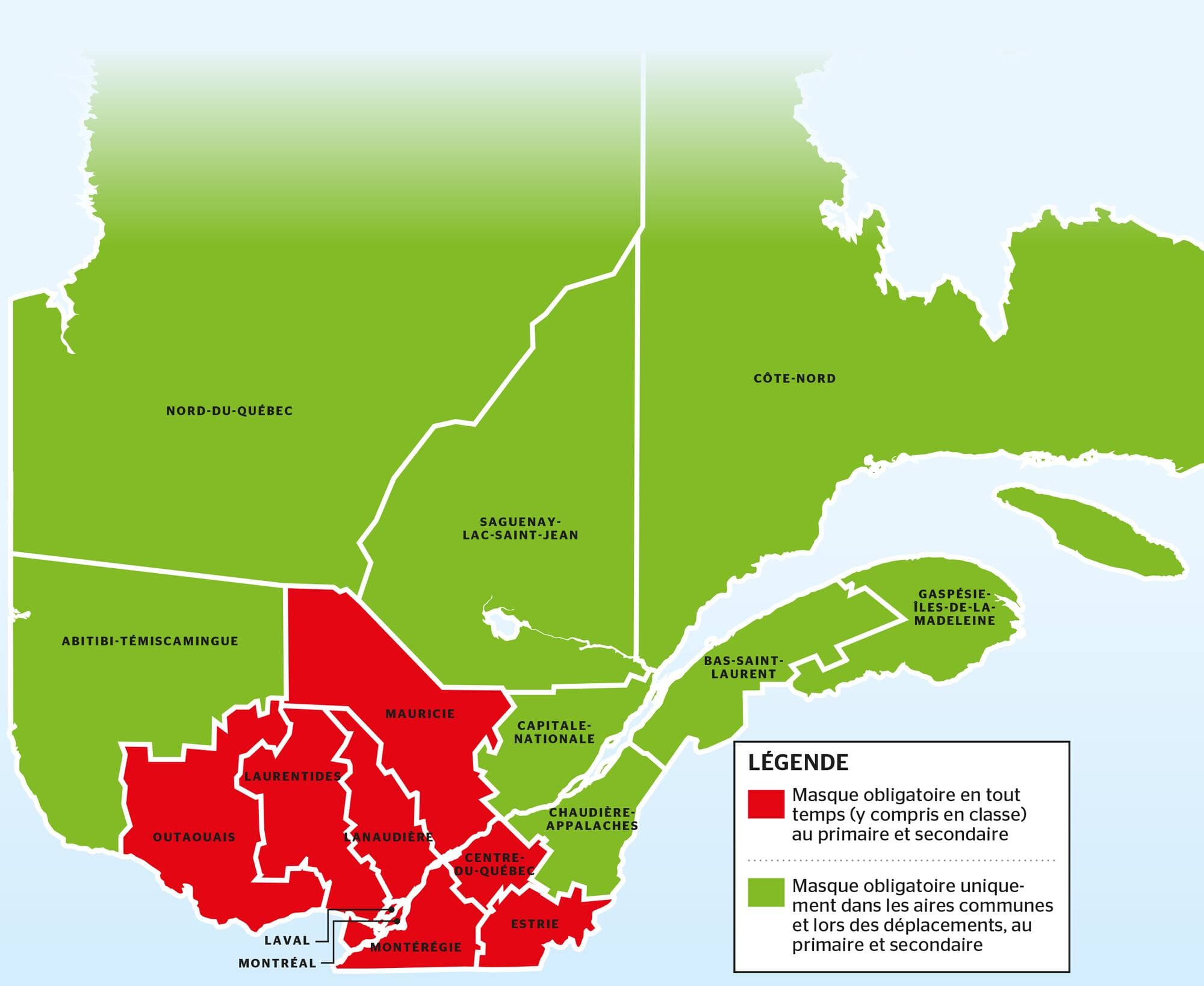Québec espère néanmoins que le port du masque sera une mesure «temporaire». Les consignes sanitaires pourraient faire l’objet d’ajustements au cours des prochaines semaines, selon l’évolution de la situation dans chaque région. La couverture vaccinale, la capacité hospitalière et la situation épidémiologique seront notamment prises en compte.