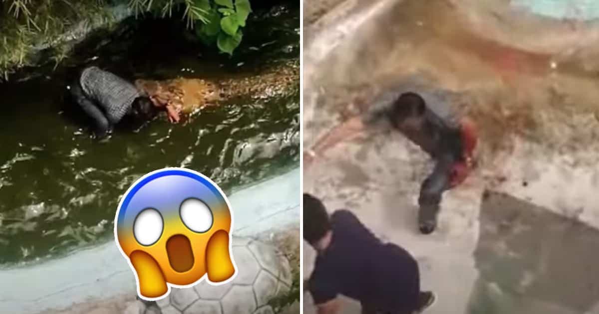 Sur les images devenues virales, on peut voir l’homme hurler et tenter de dégager son bras, tandis que la bête maintient sa mâchoire fermée et essaie d’amener sa proie plus profondément dans son habitat artificiel.